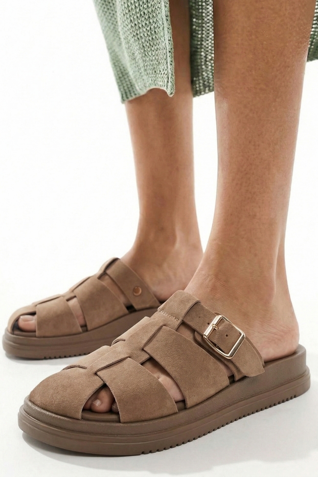 Sandale Flatform cu Bretele Elaborate & Cataramă