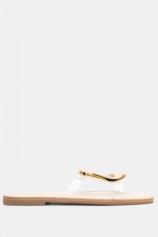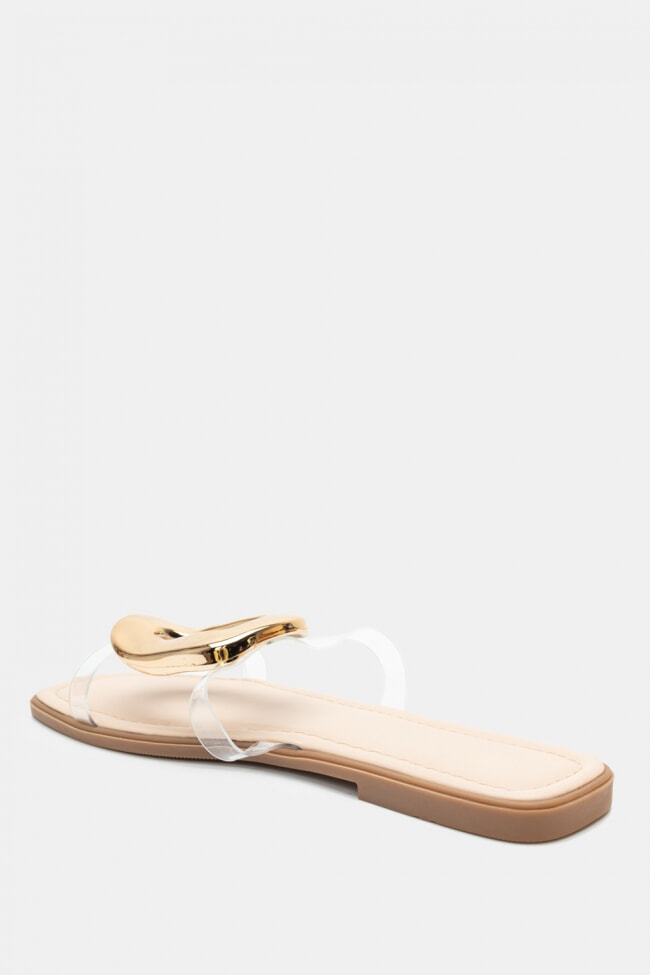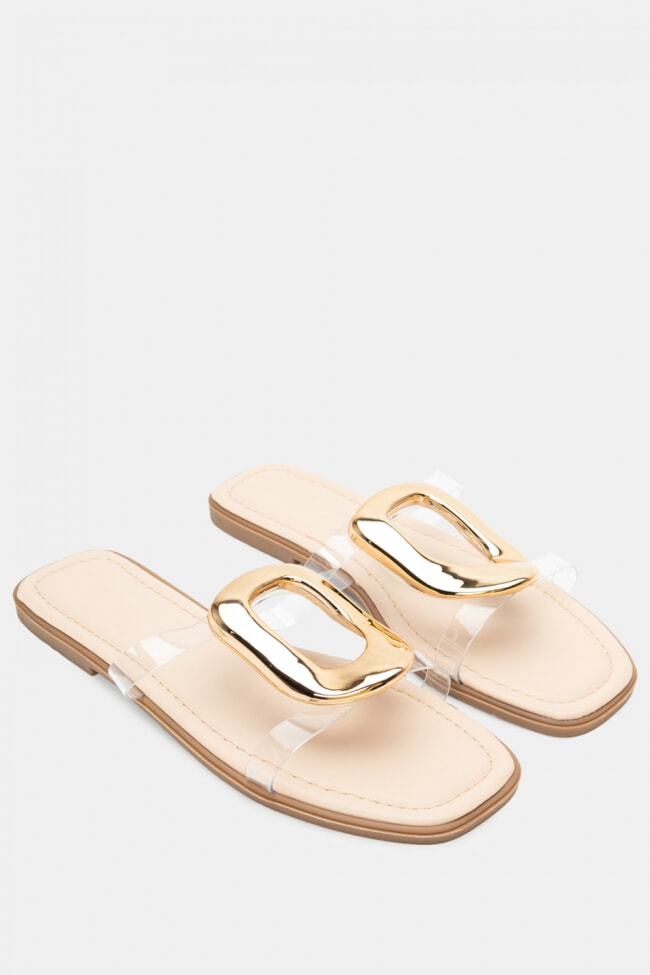 Остри обувки на висок ток с отворена пета, прозрачни елементи и страсс