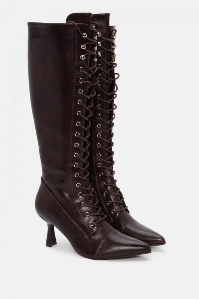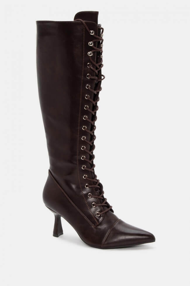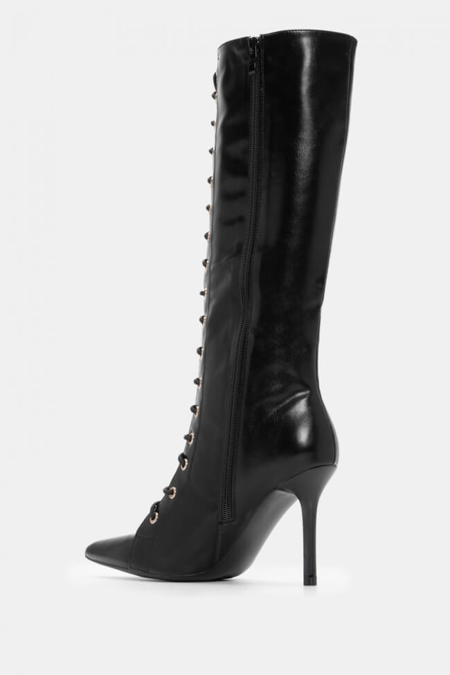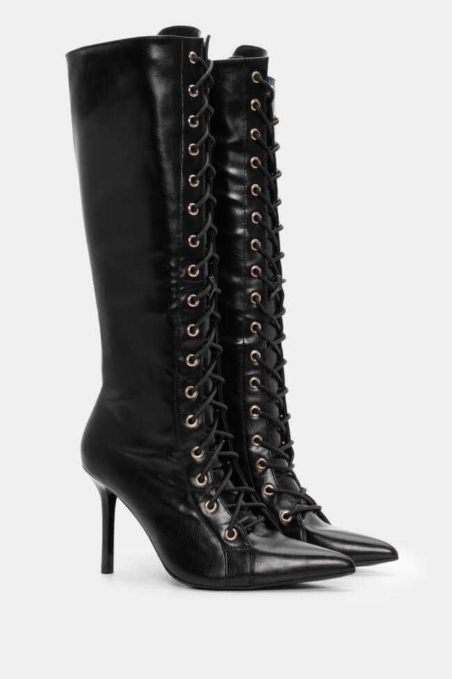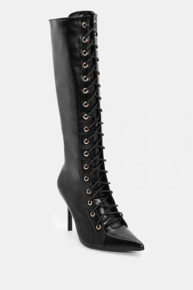 Μπότες Μυτερές Μονόχρωμες με Κορδόνια