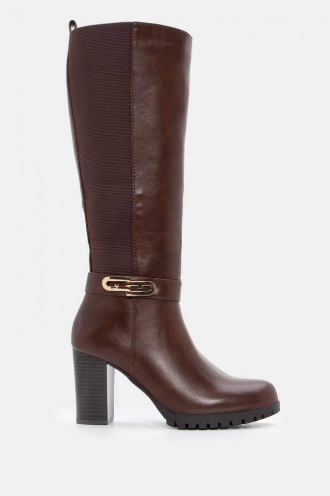 Stivali con effetto risvolto a fascia & cinturino decorativo