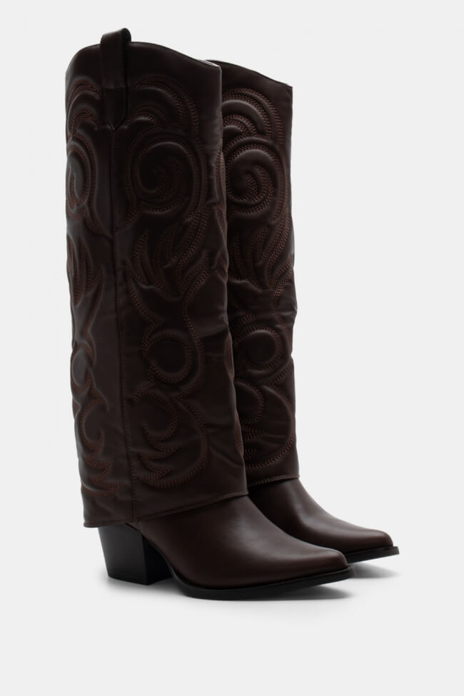 Cizme Cowboy cu Efect de Manșetă Repliabilă