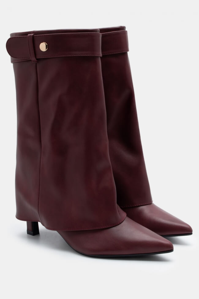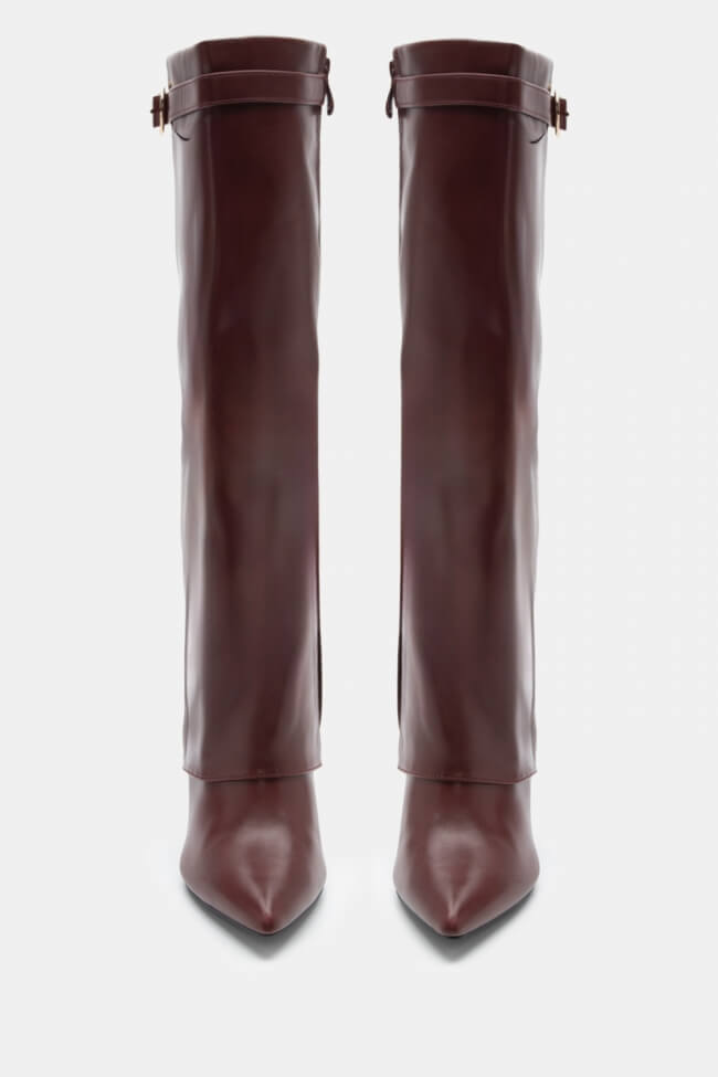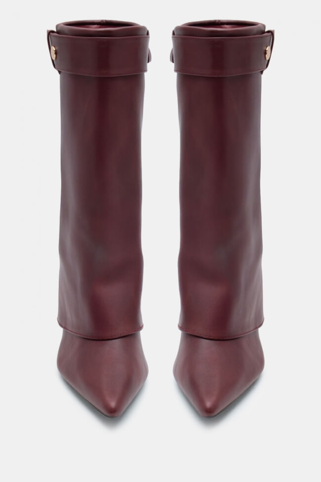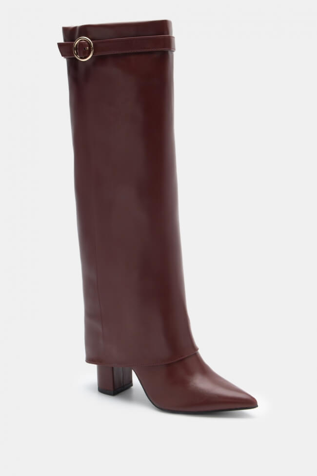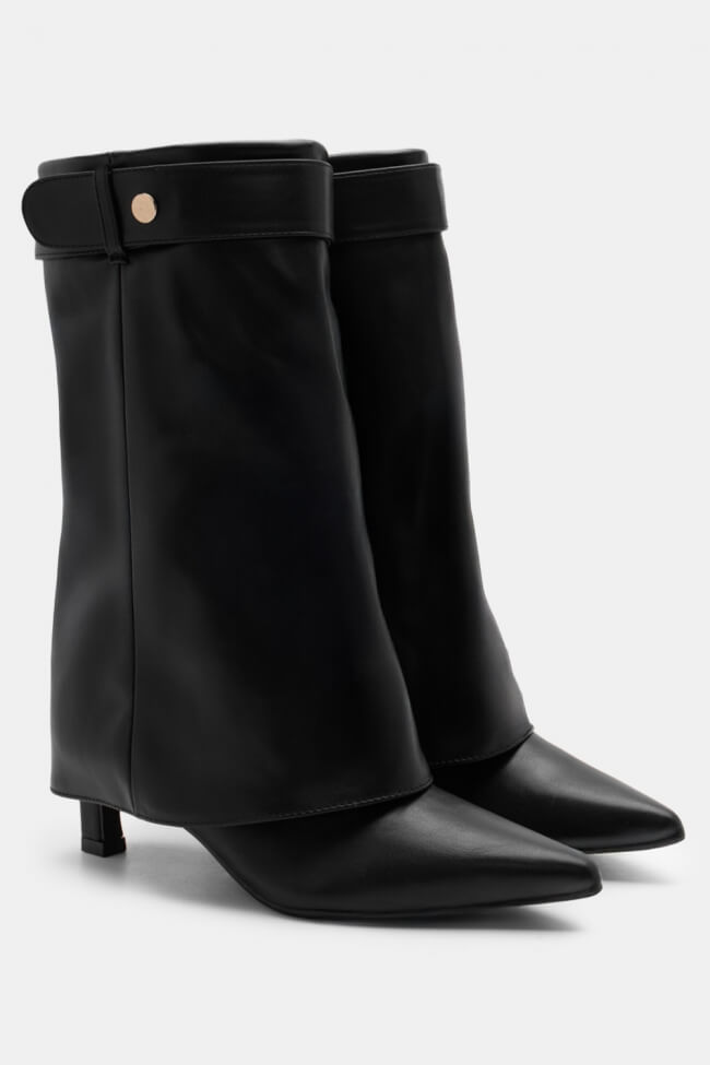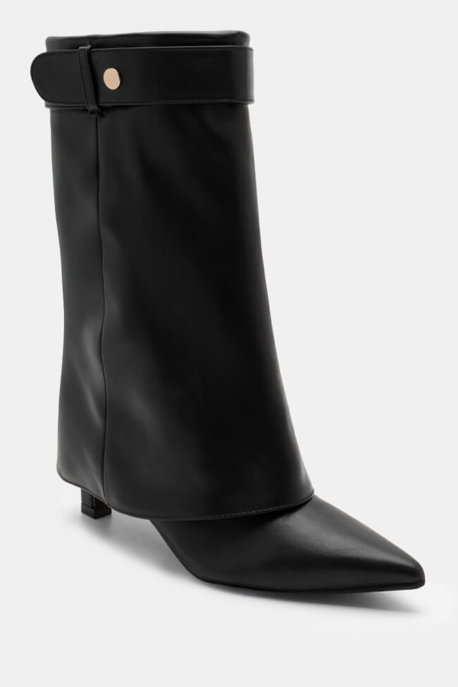 Cizme ascuțite cu efect de clapetă pliabilă & curea decorativă
