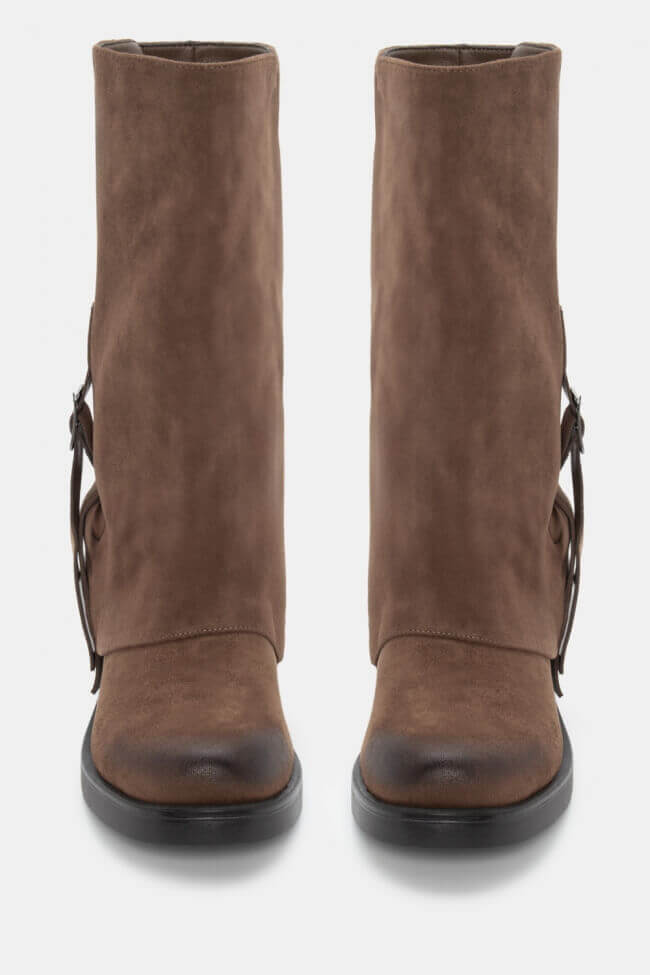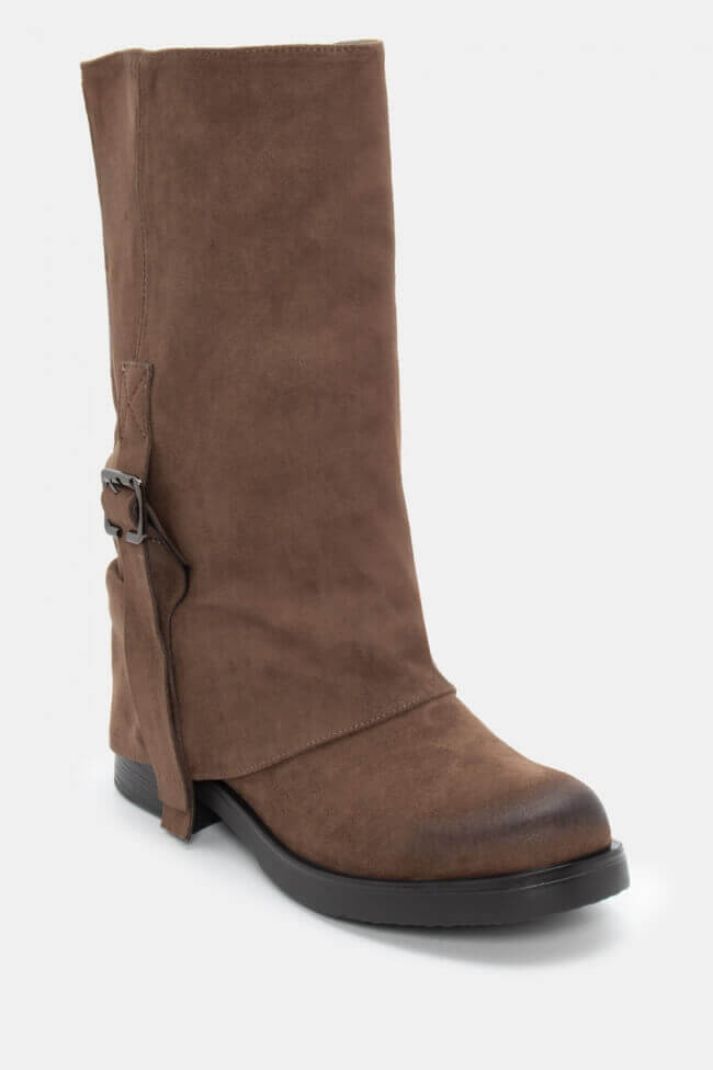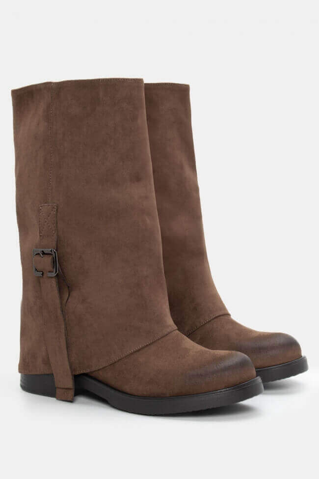 Cizme cu Efect de Manșetă Pliabilă & Curelușă Decorativă