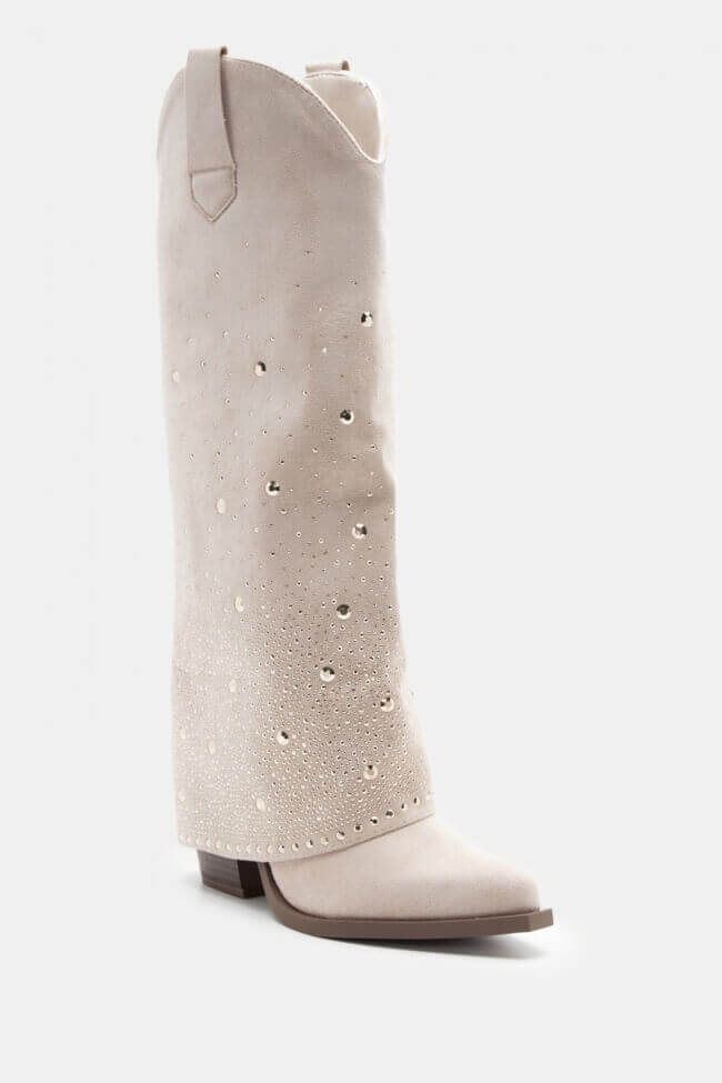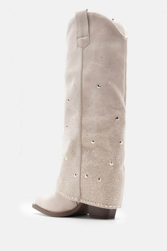 Μπότες με Εφέ Αναδιπλούμενης Φάσας & Διακοσμητικές Φωτιές από Strass