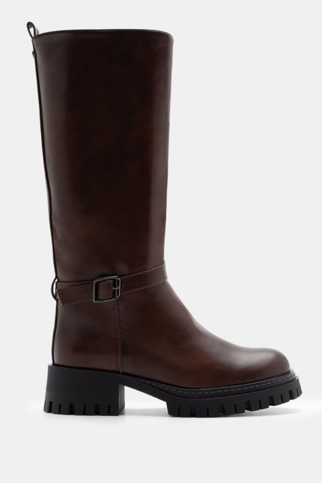 Μπότες με Εφέ Αναδιπλούμενης Φάσας & Τρακτερωτή Σόλα