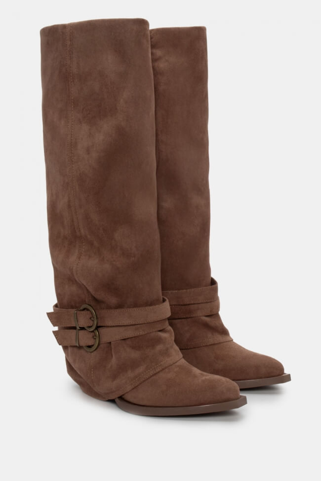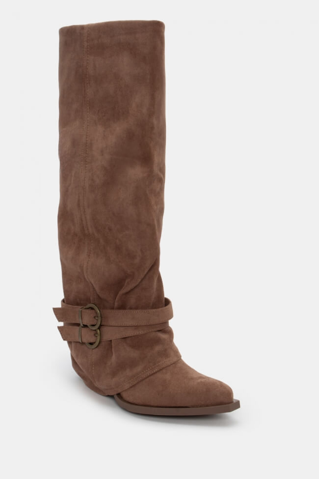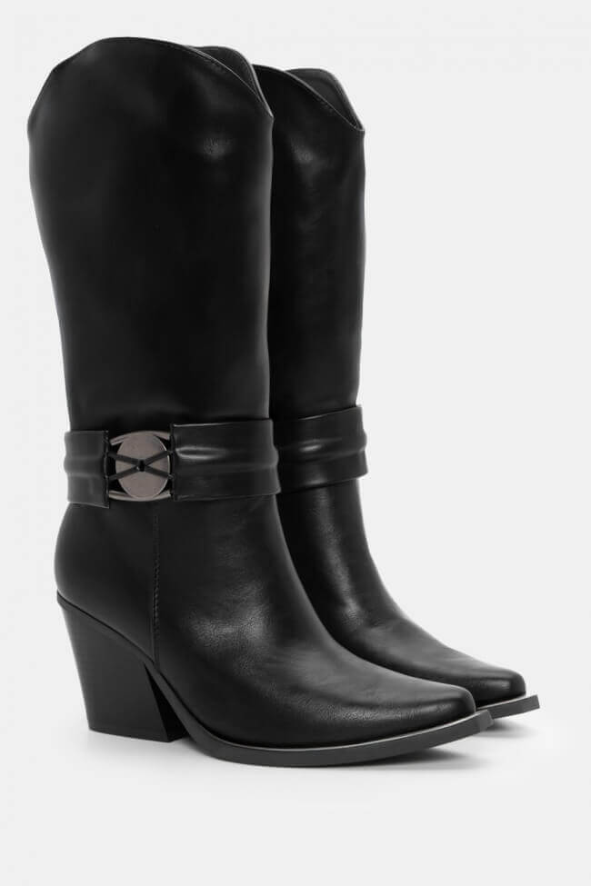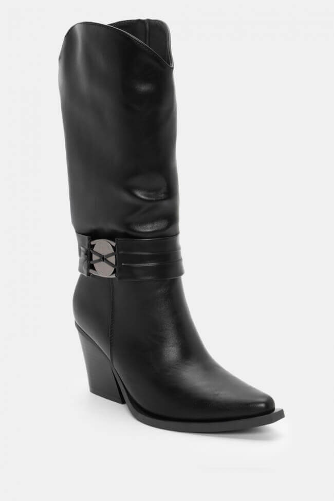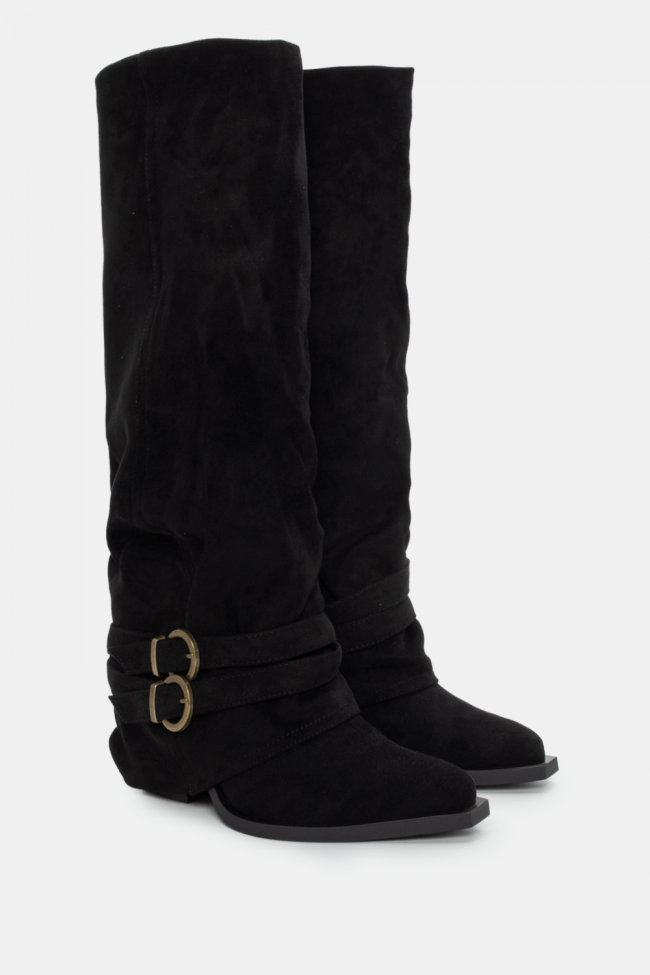 Cizme Cowboy cu Efect Îndoit cu Curele Duble
