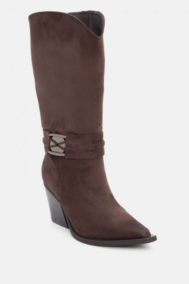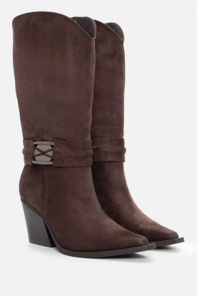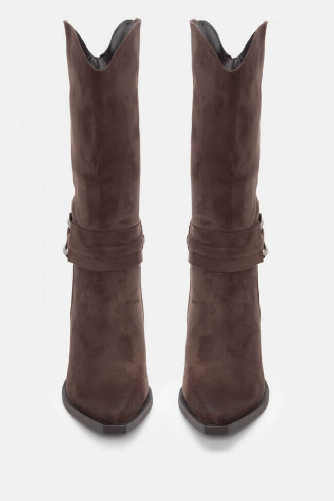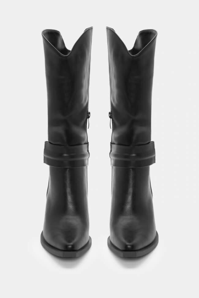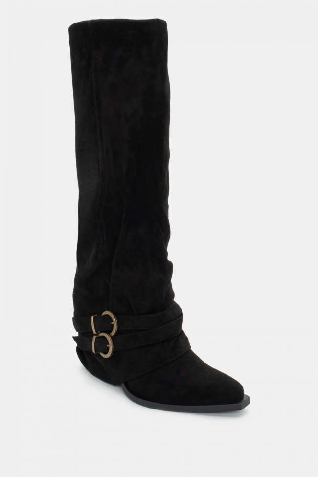 Cizme Cowboy cu Efect Îndoit cu Curele Duble