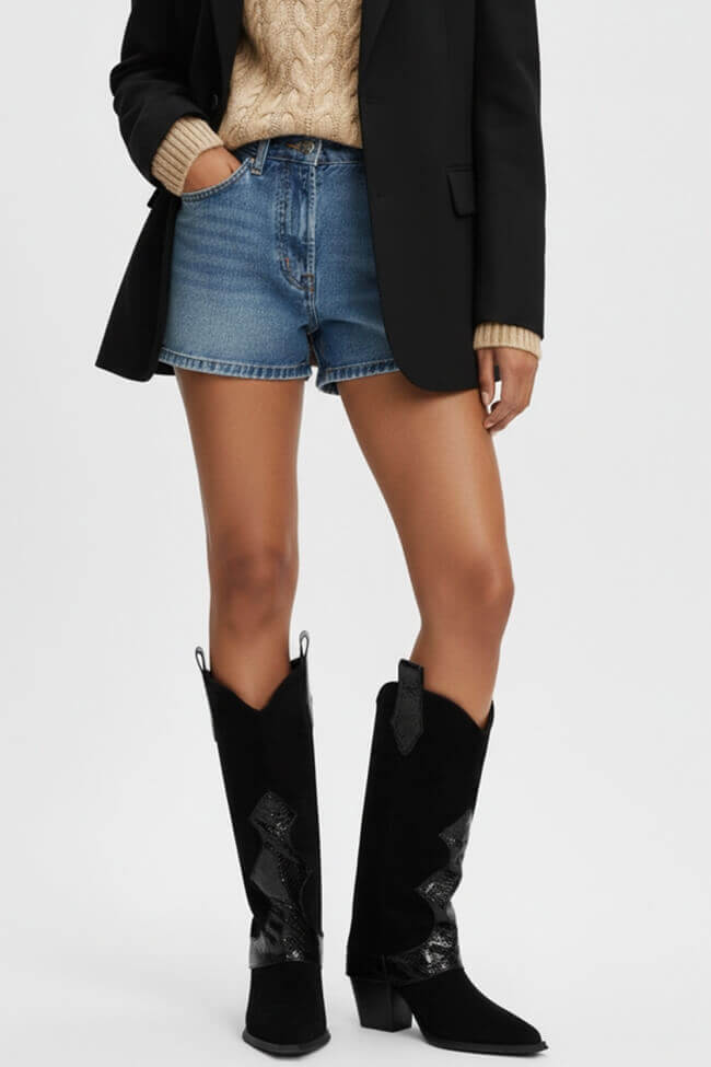 Μπότες Cowboy με Εφέ Αναδιπλούμενης Φάσας