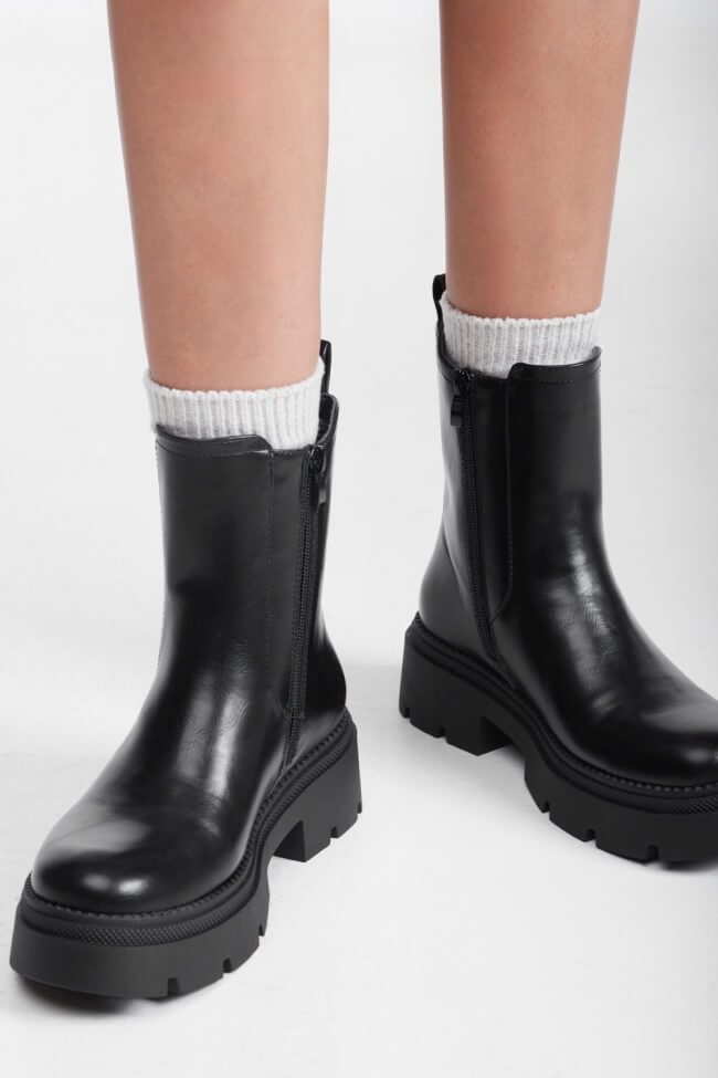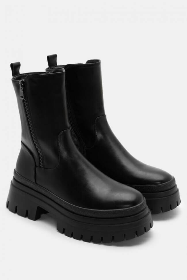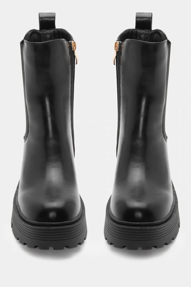 Boots with Chunky Sole & Front Zipper