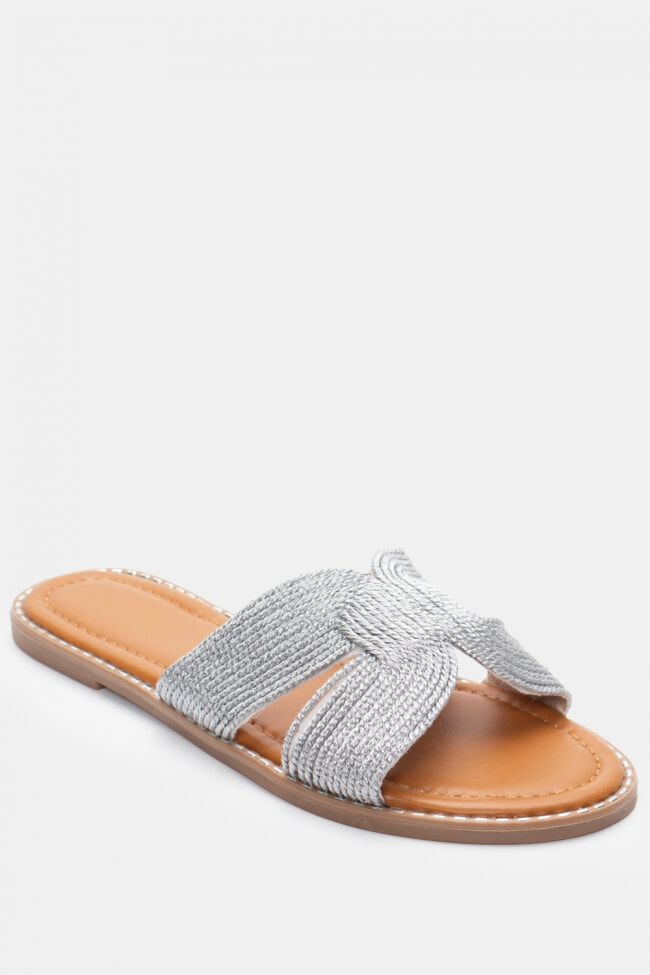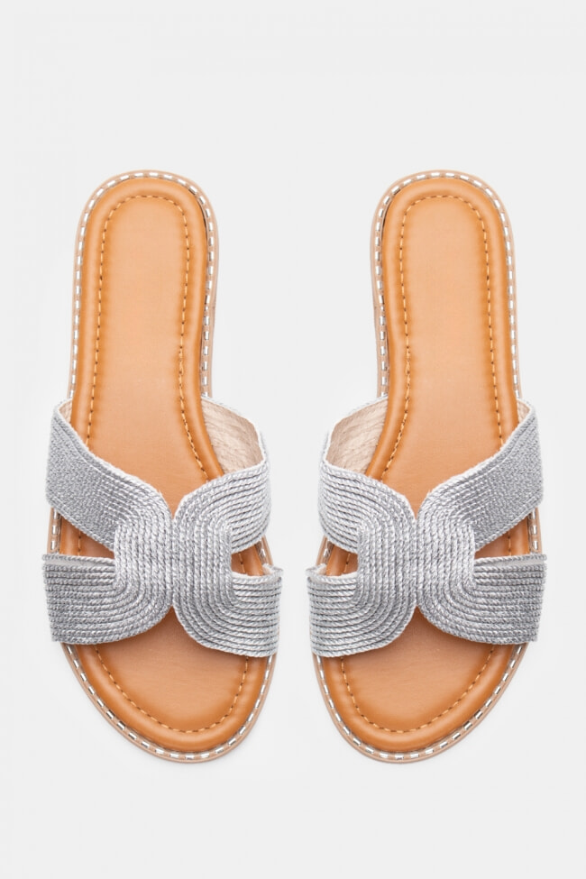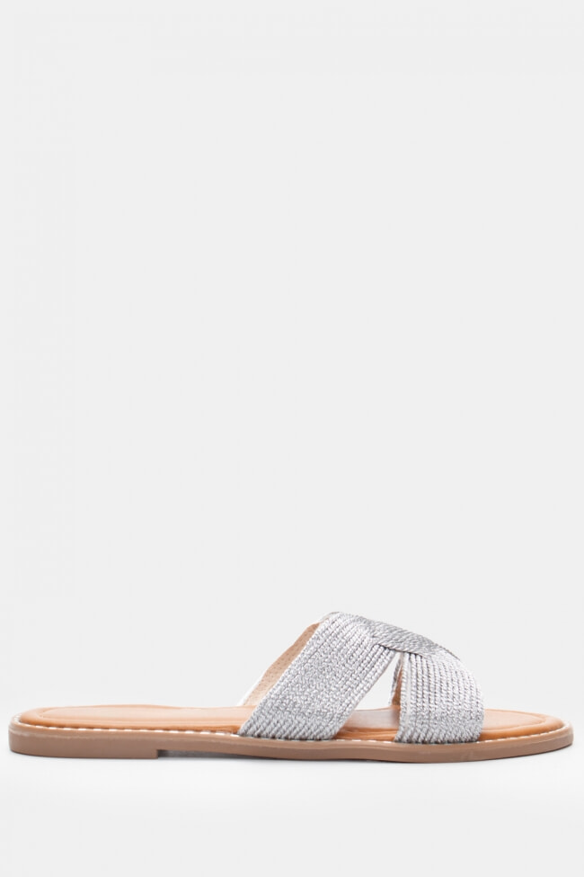 LUIGI DESIGN- Sandale plate cu bareta înclinată & Strass
