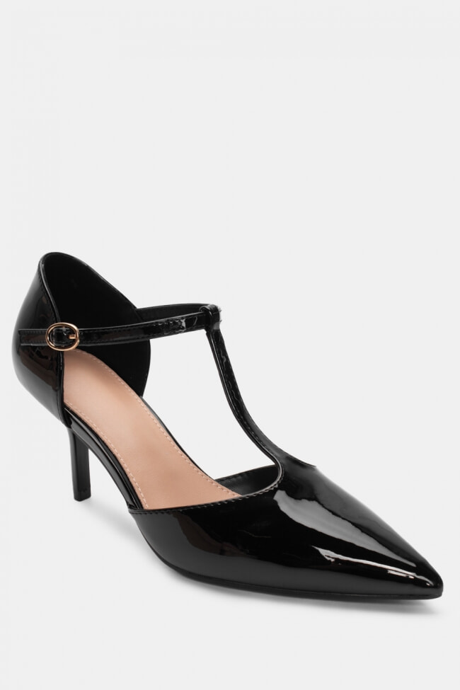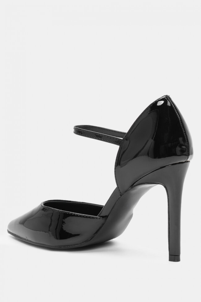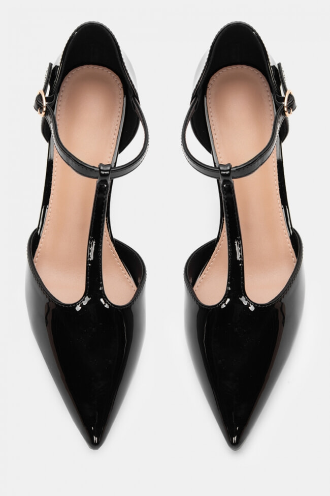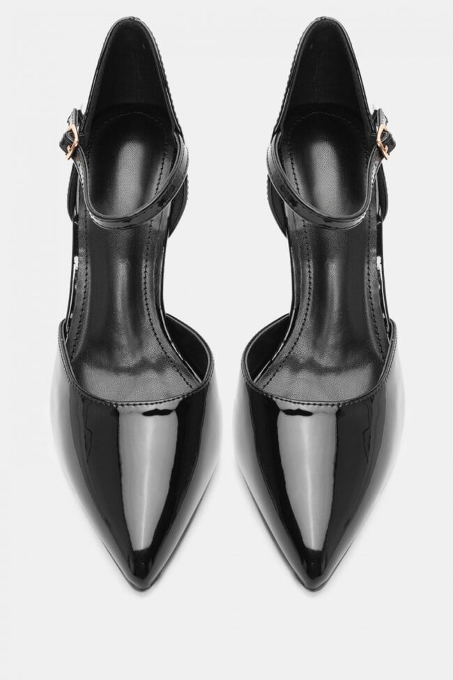 За коктейл с приятелки, избери лакобовани обувки на шпиц, които са точно толкова гламурен колкото трябва, и ги облечи с прилепнала черна рокля и голямо сако отгоре.