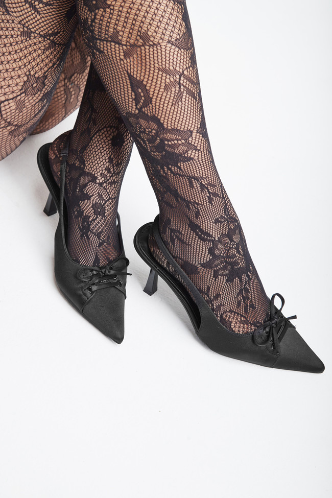 Scarpe con Tacco con Trasparenza e Fiocco Decorativo in Rete