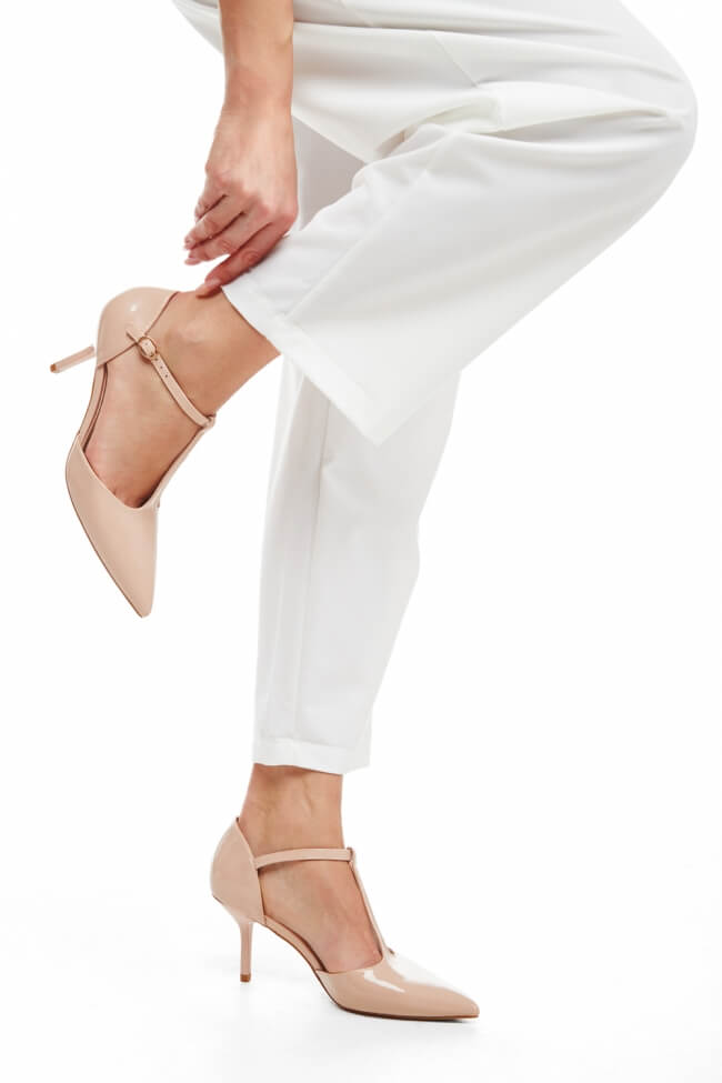 Вземи сега обувки на шпиц с нисък ток и си реши проблема. Те са идеални за целодневно носене, много са елегантни и определено ще ти бъдат удобни.