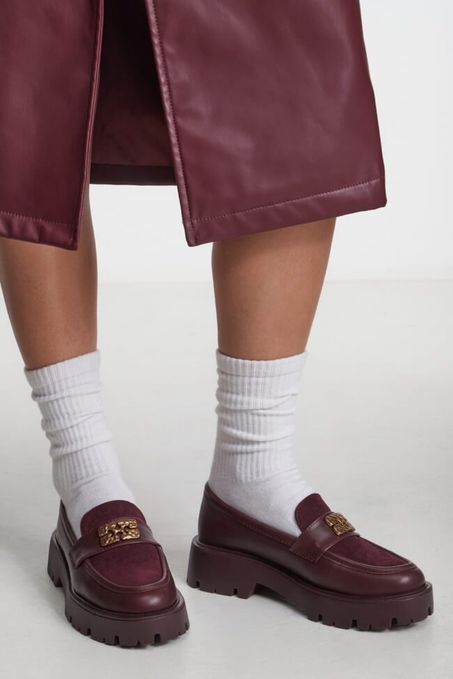 Scegli loafers alti con dettagli metallici o in texture particolari, come velluto o vernice, e indossali con abito lungo aderente o minigonna per un effetto glam.