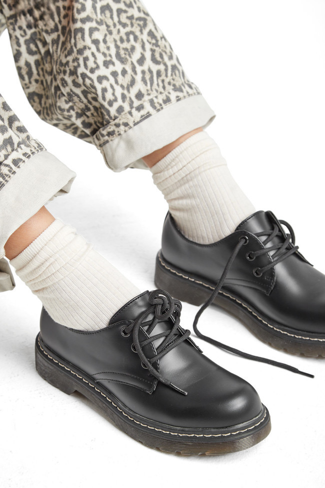 Αν πάλι ψάχνεις κάτι πιο business-like, αλλά wearable όλη μέρα, βάλε στο καλάθι σου τα Black Friday loafers. Δοκίμασε χαμηλά μαύρα μοκασίνια με μακριά τζιν φούστα ή σαλοπέτα και ψηλά λουστρίνι (και σε χρώμα, why not), με λευκές sportive κάλτσες! Είναι cute, είναι πρωτότυπο, είναι trend!