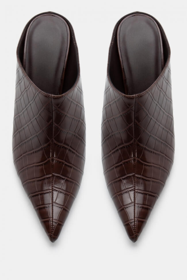 - Încearcă mules închise sau peep-toe din piele întoarsă sau piele: Îți mențin piciorul cald și în același timp rămân stilate.
