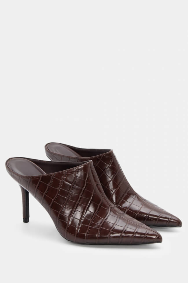 - Mules cu toc înalt → Pentru apariții elegante & stilate. Se potrivesc perfect cu rochii midi & piese tailorate.