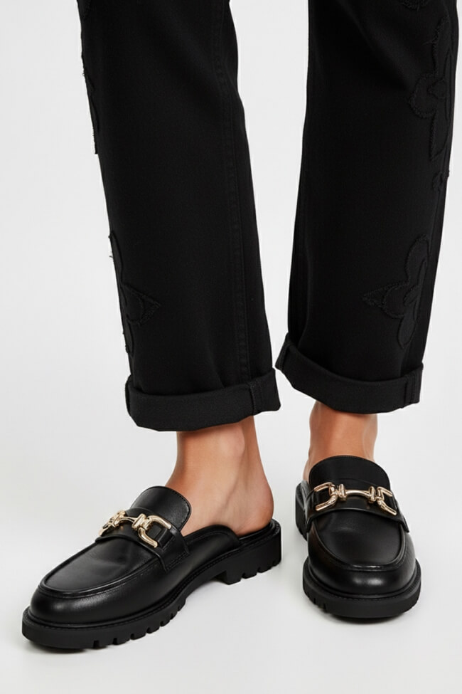 - Mules flat → Ideali per comfort tutto il giorno. Indossali con jeans, shorts o pantaloni ariosi.
