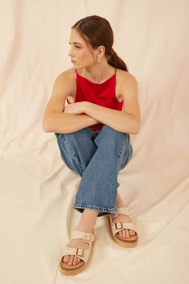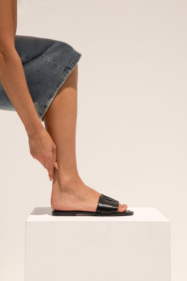 LUIGI DESIGN- Sandale plate cu bareta înclinată & Strass