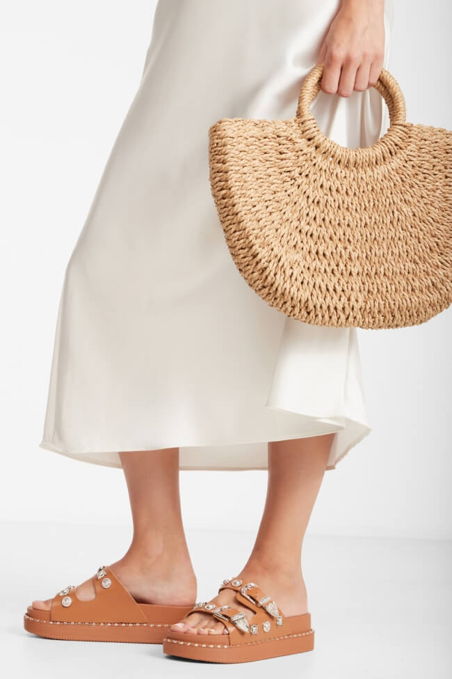 LUIGI DESIGN - Sandale Flatform cu Ornamente Metalice