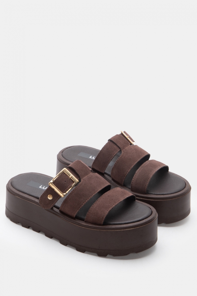 Sandale flatform cu două catarame și bareta cu scai
