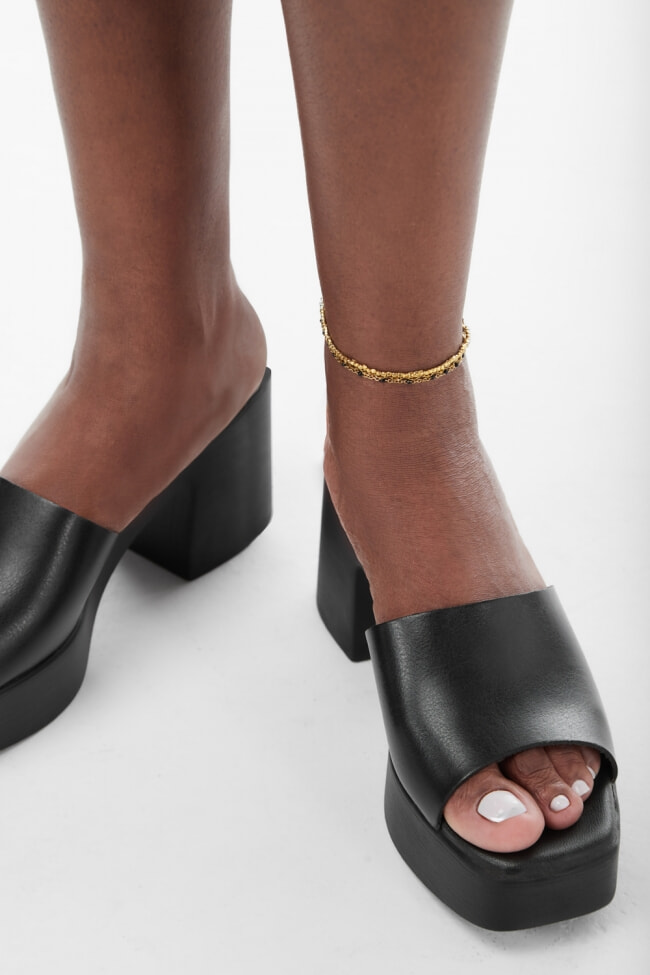 Πες «ναι» σε πλατφόρμες με χοντρό τακούνι σε μαύρο ή nude, και συνδύασέ τις με σατέν φόρεμα ή ολόσωμη φόρμα. Ένα clutch και bold κοσμήματα θα απογειώσουν το αποτέλεσμα.