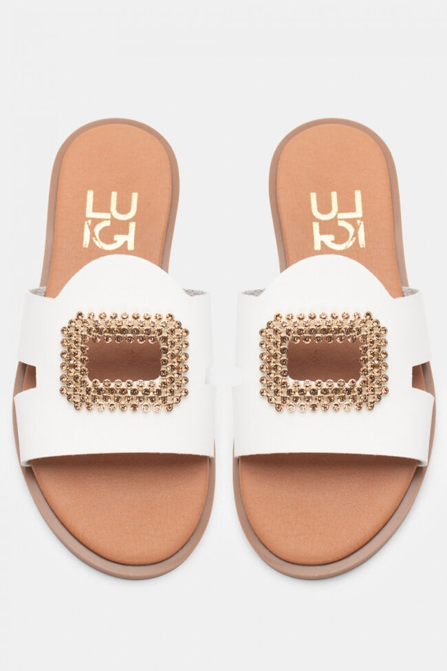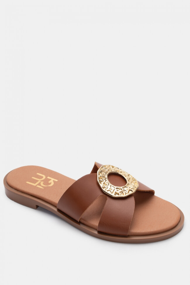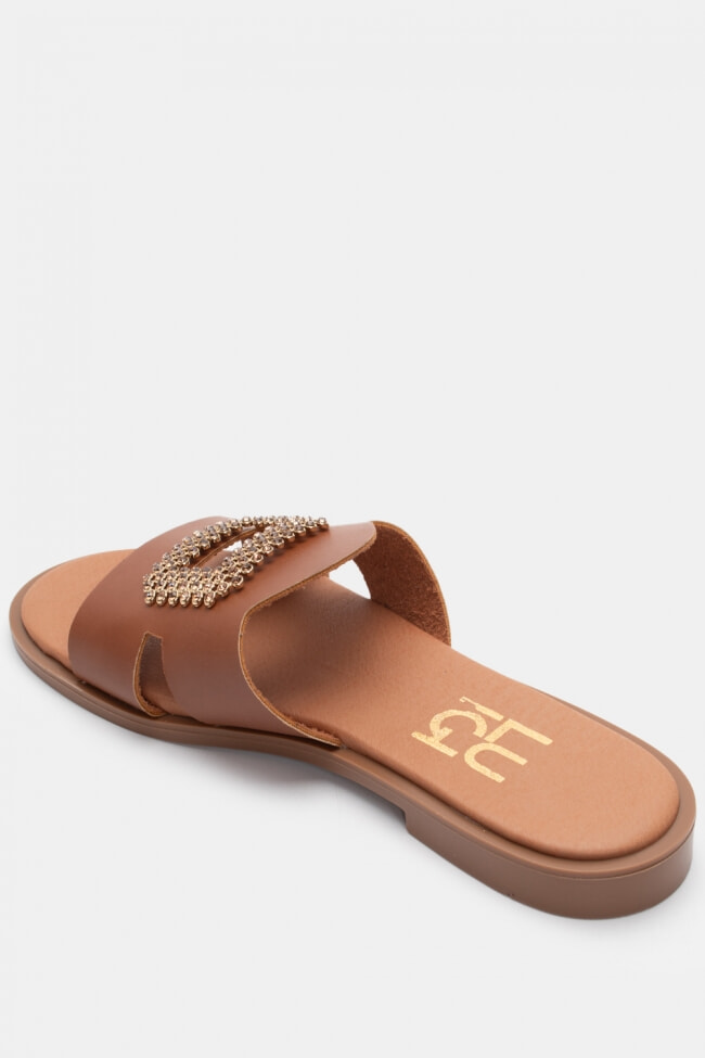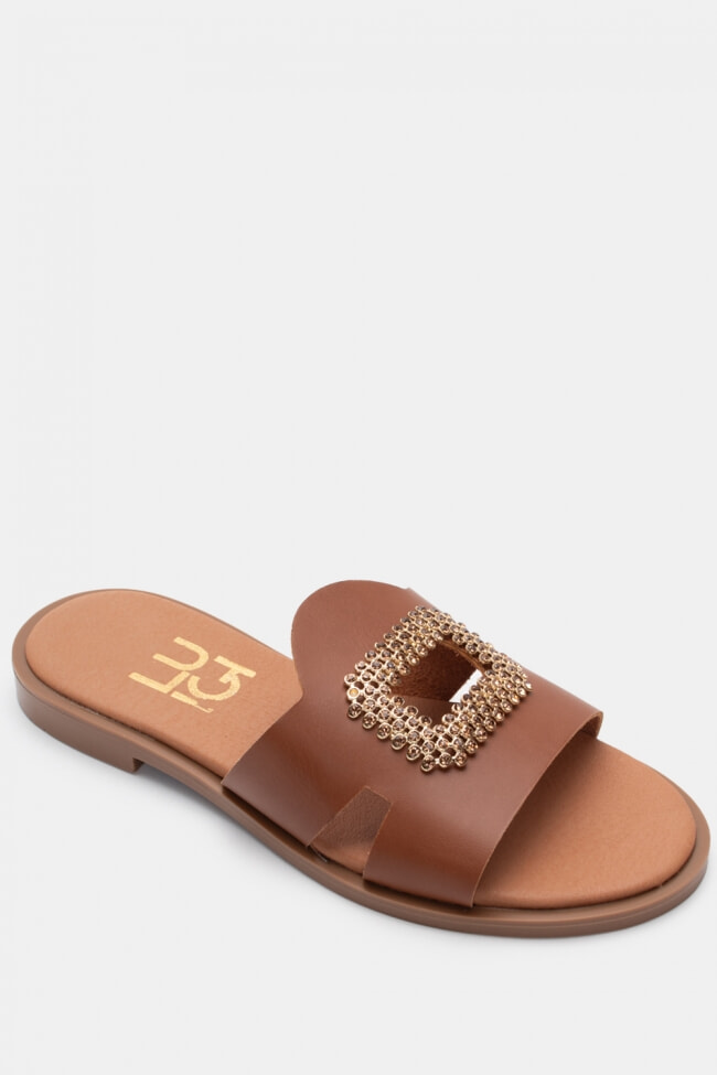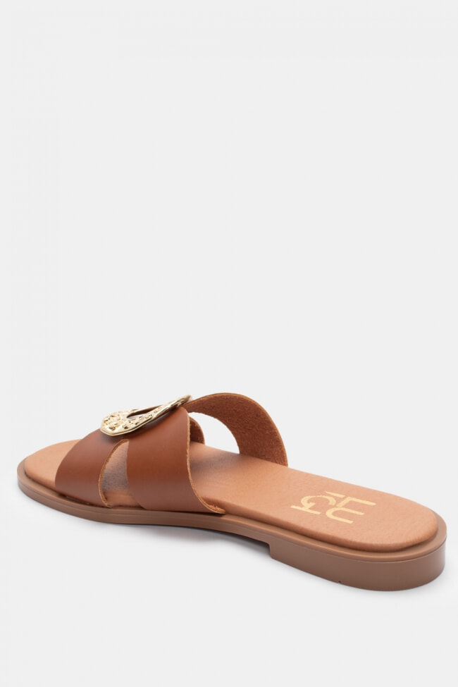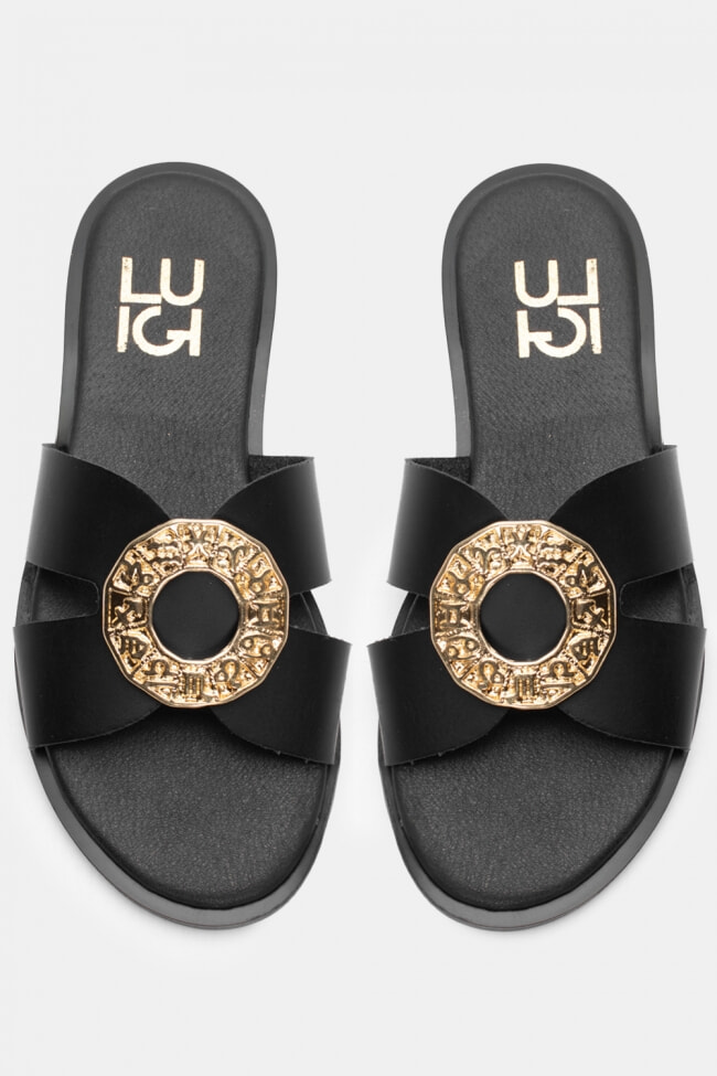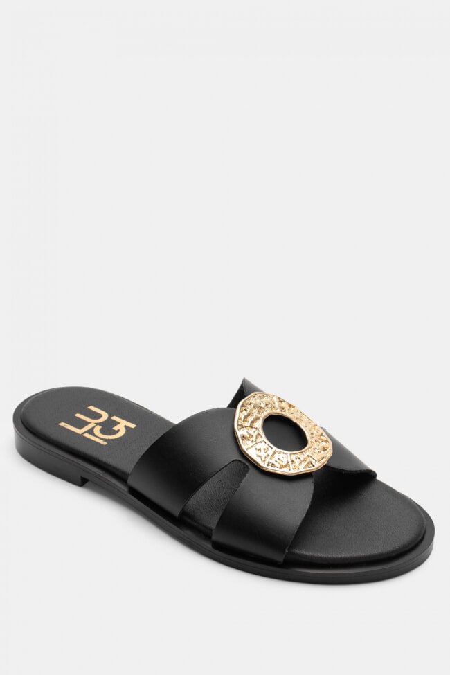 LUIGI DESIGN - Плоски сандали с широка лента и декоративен елемент