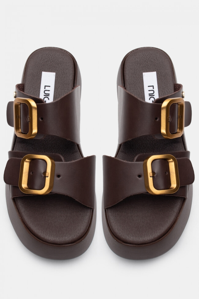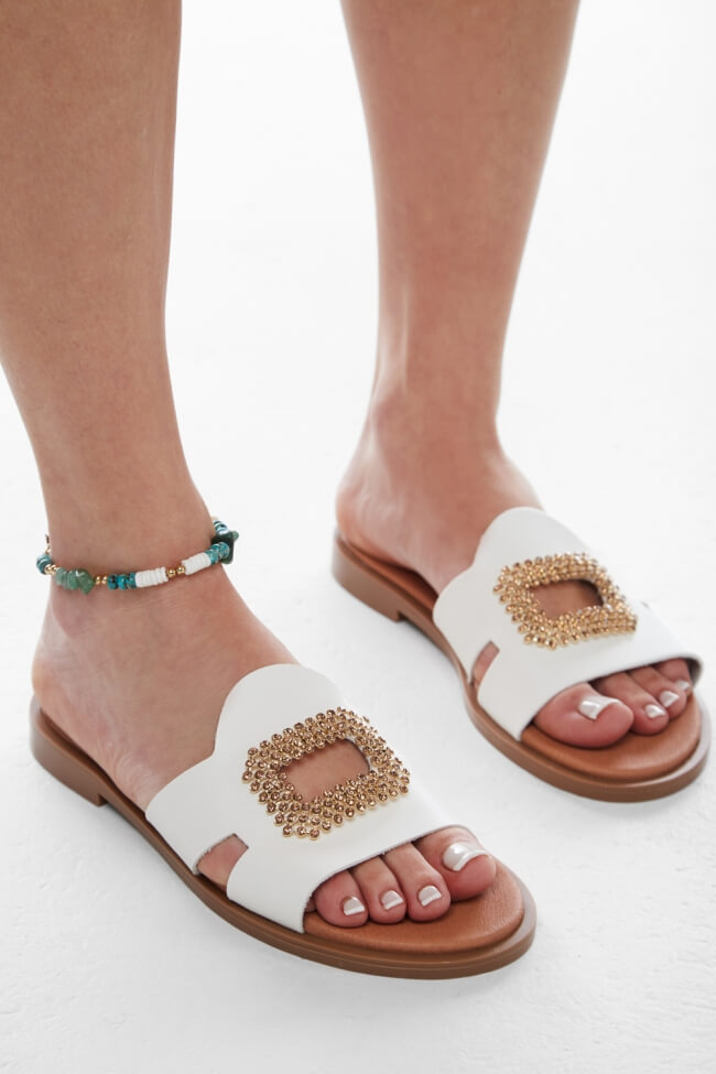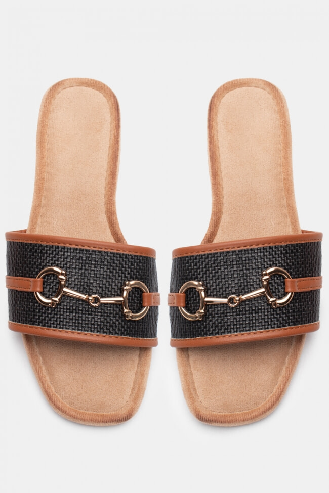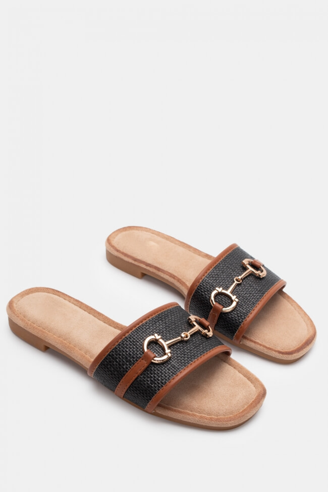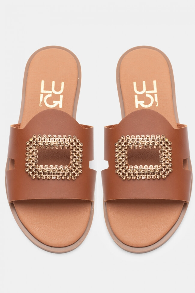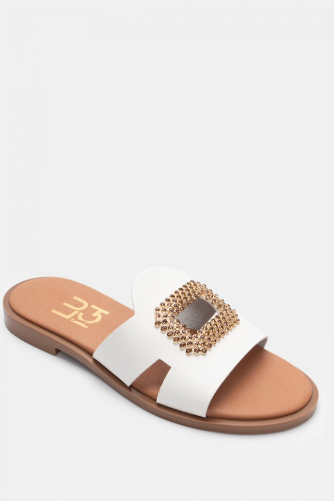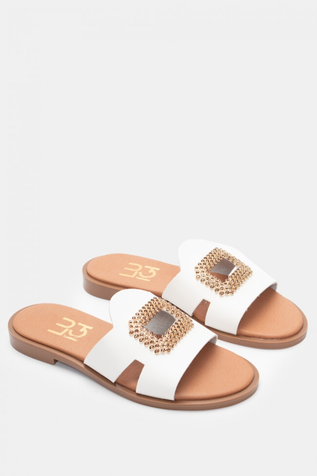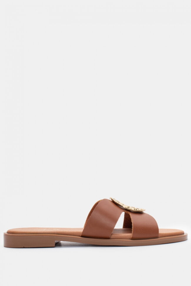 LUIGI DESIGN - Плоски сандали с широка лента и декоративен елемент