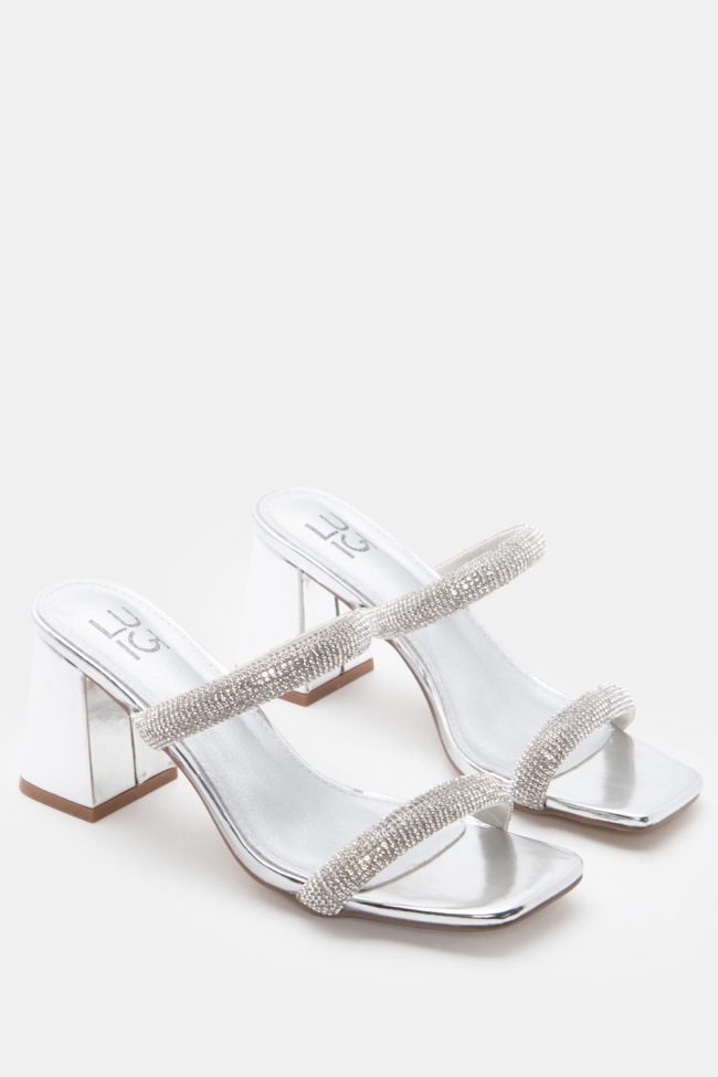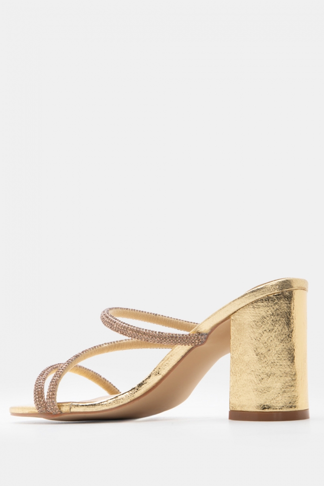 Qualunque sia l\'outfit che hai scelto, non puoi dire di no a un paio di sandali femminili con tacco grosso con strass super impressionanti.