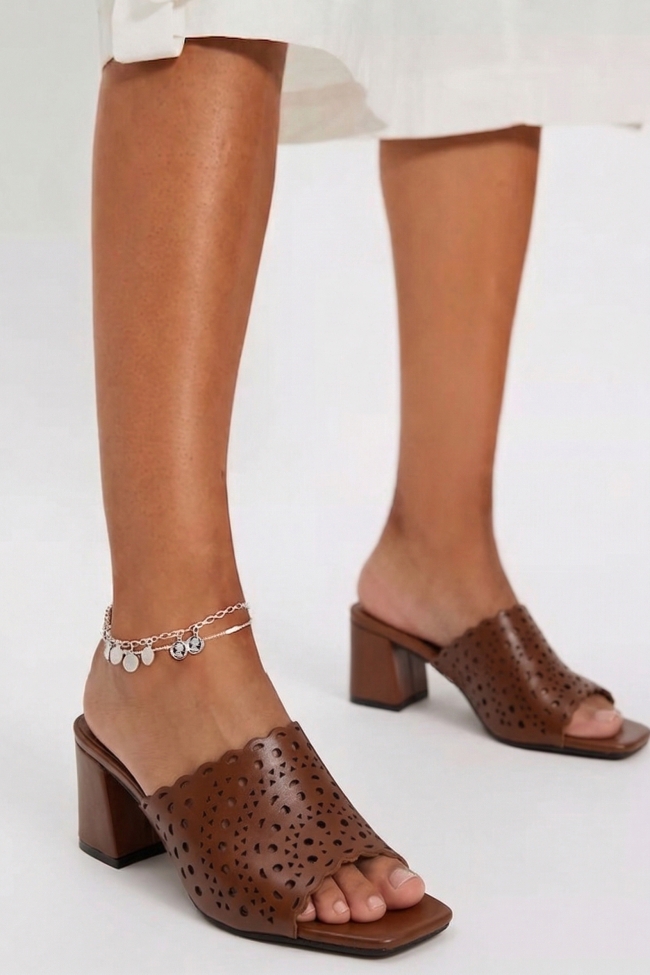 - Per i più… amanti dell\'ufficio, prova sandali con tacco grosso neri, azzurri o marroni.