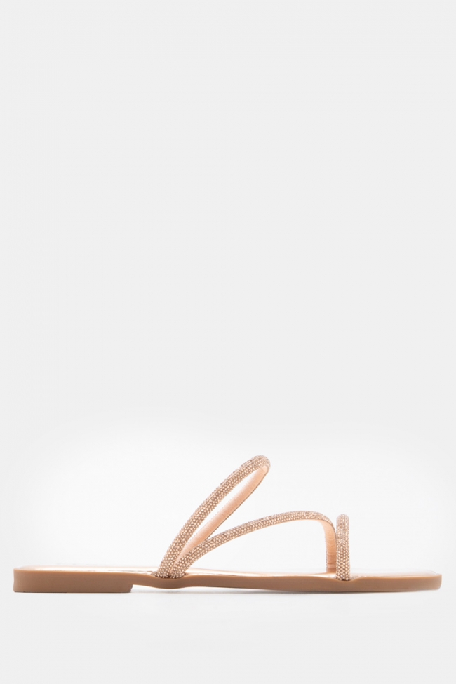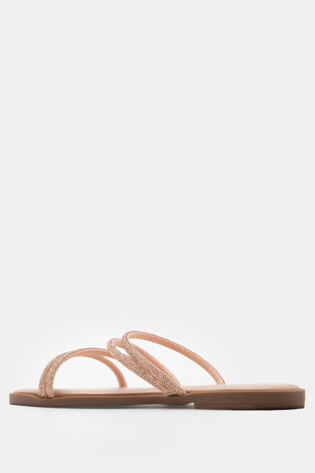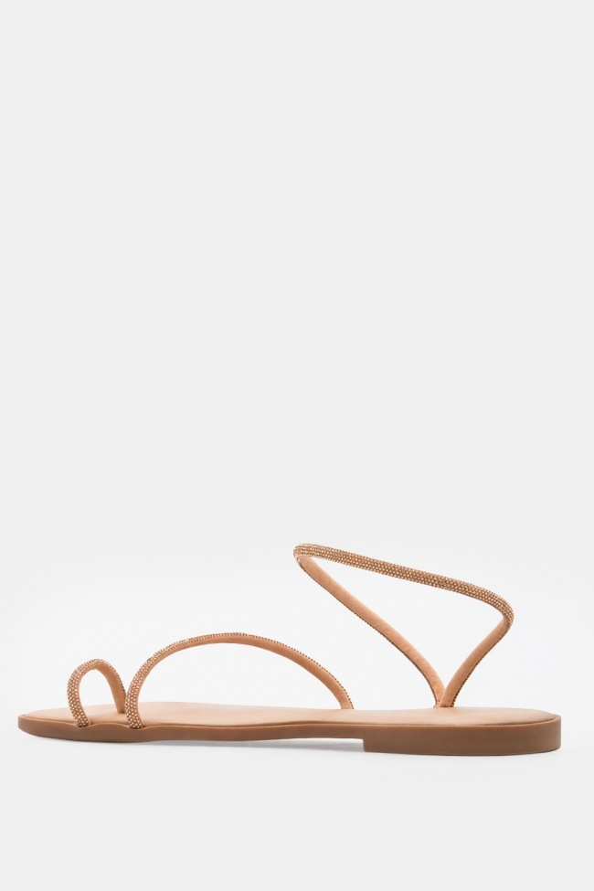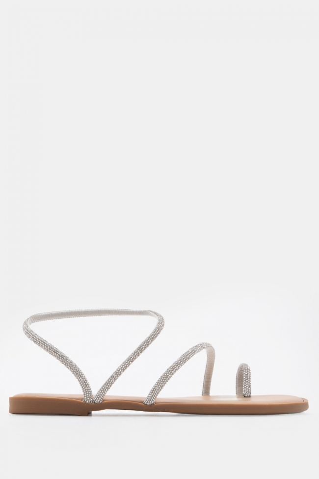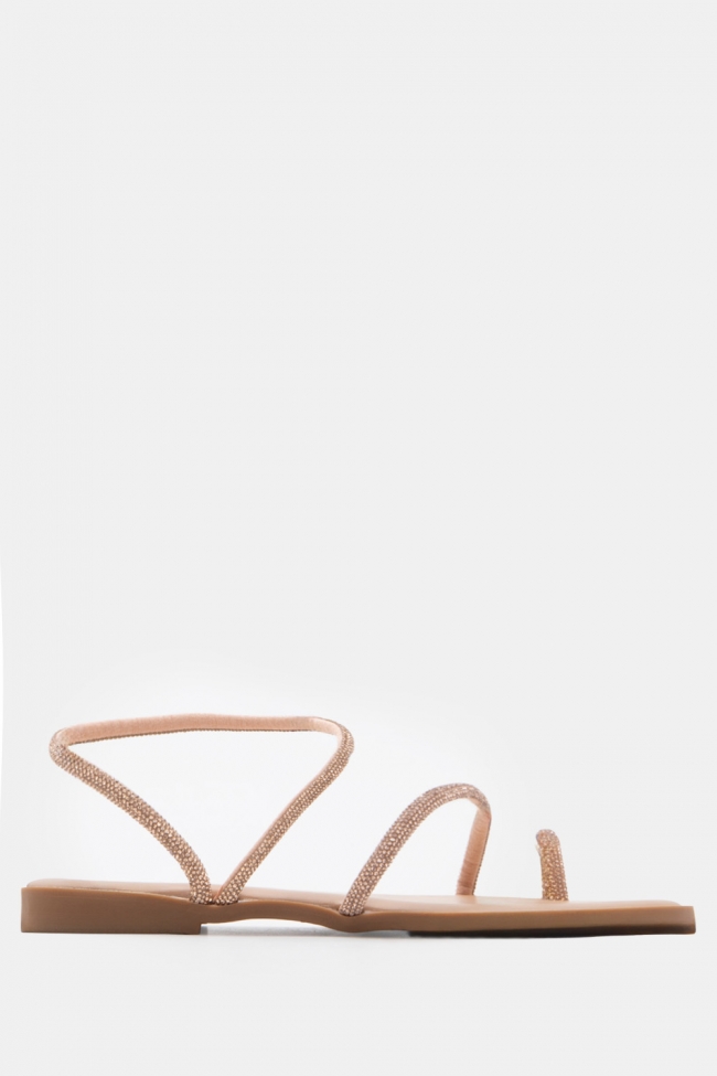 Σανδάλια Flat με Λοξό Λουράκι & Strass