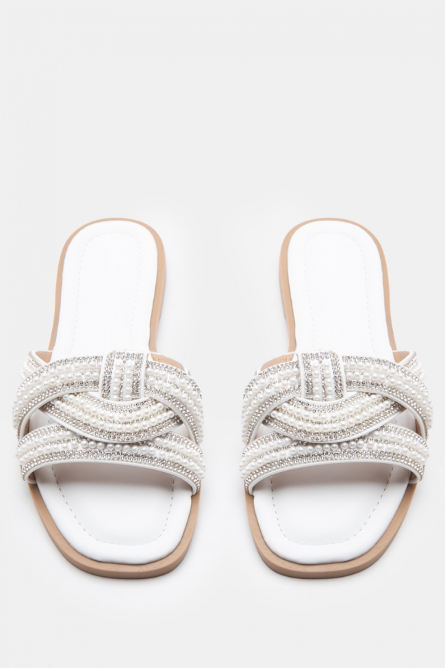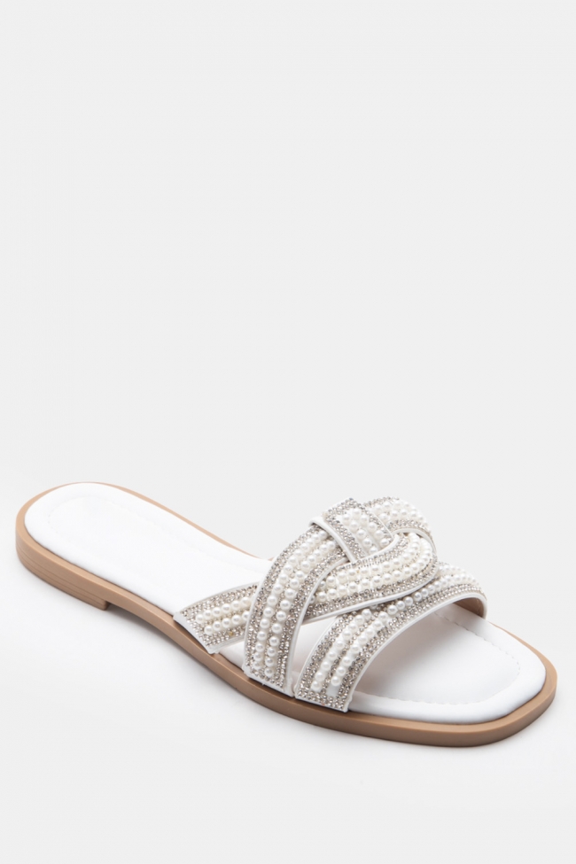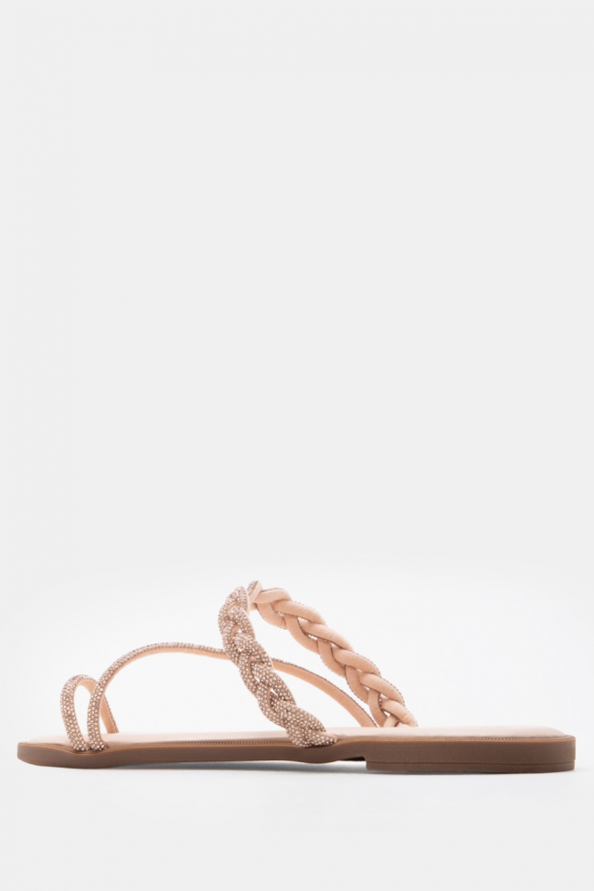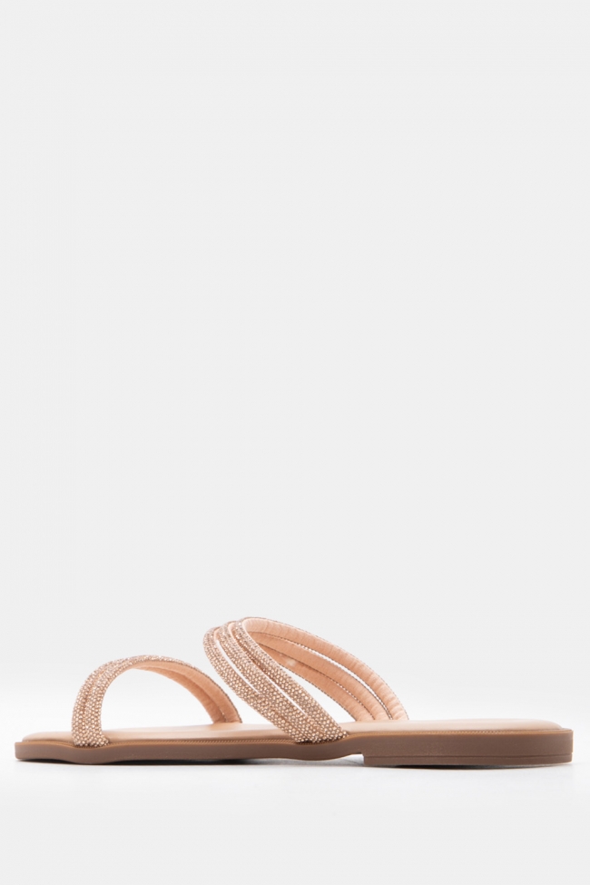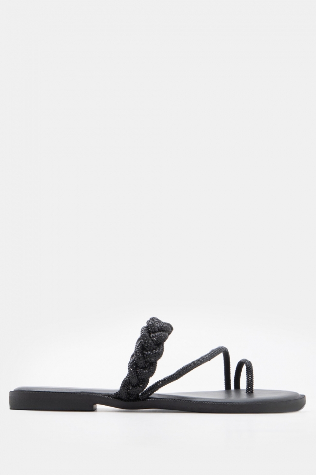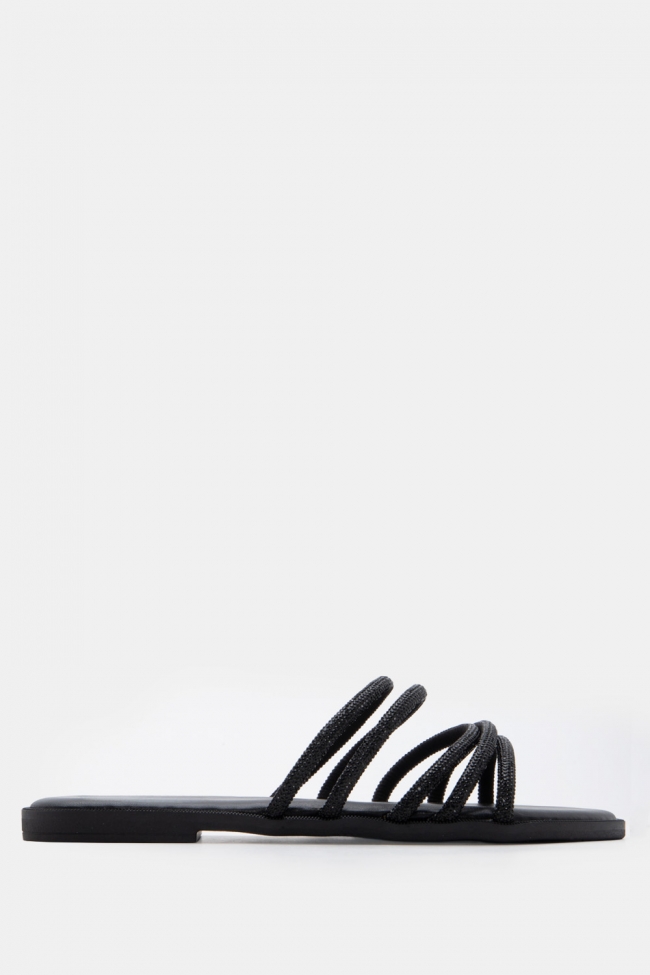 Σανδάλια Flat με Λοξό Λουράκι & Strass