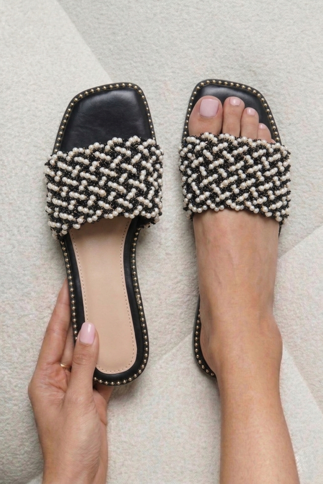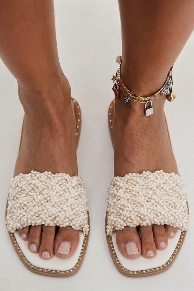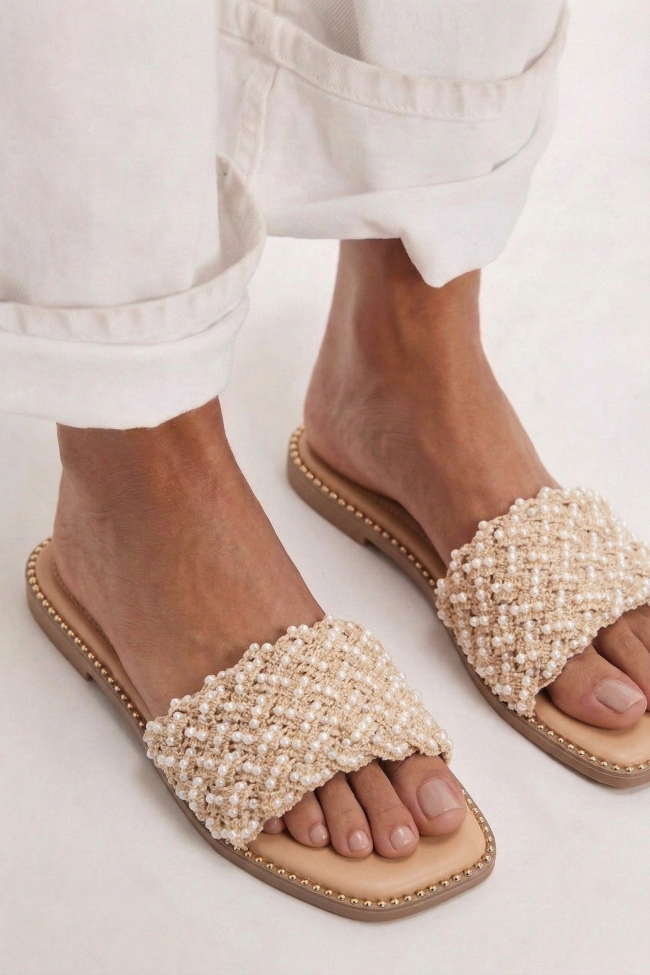 Flat Σανδάλια με Διακοσμητικές Χάντρες & Τρούκς