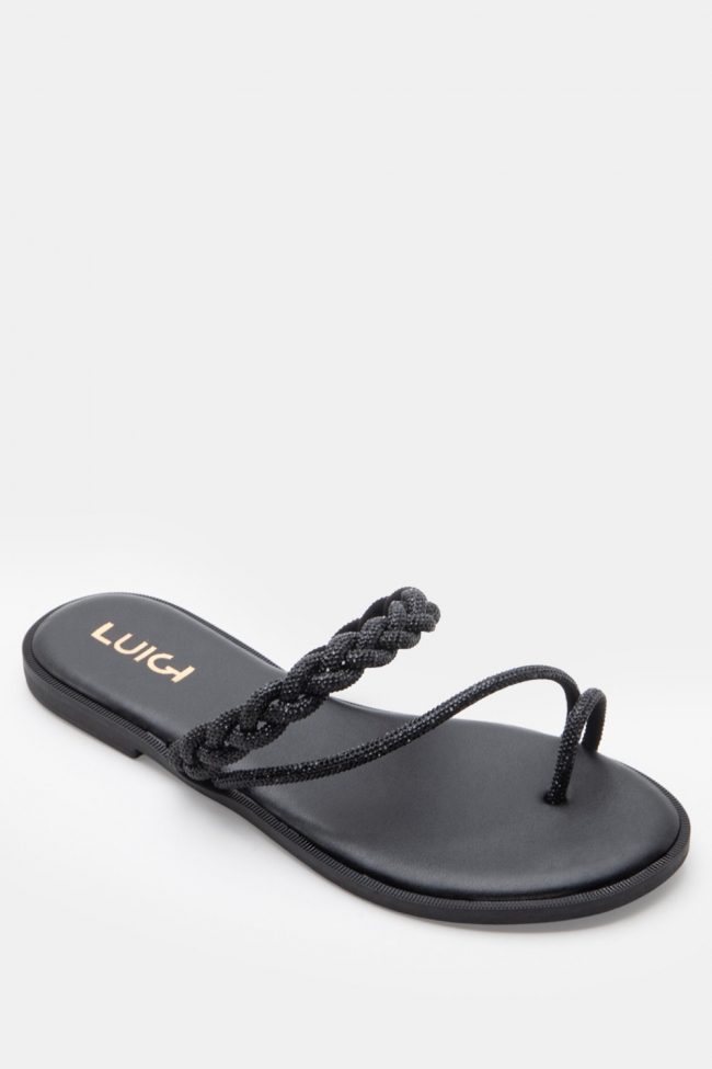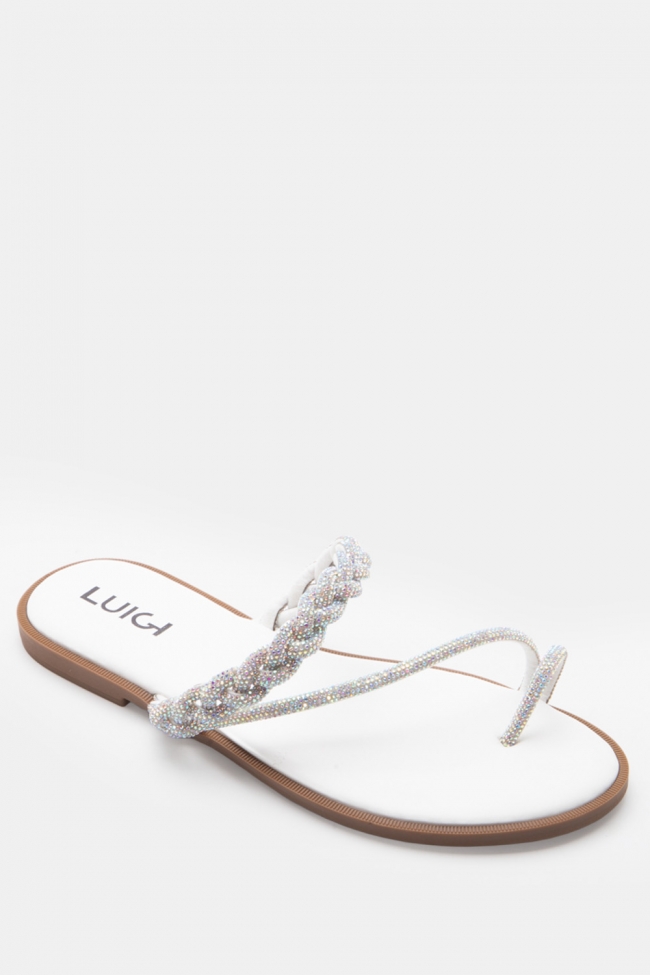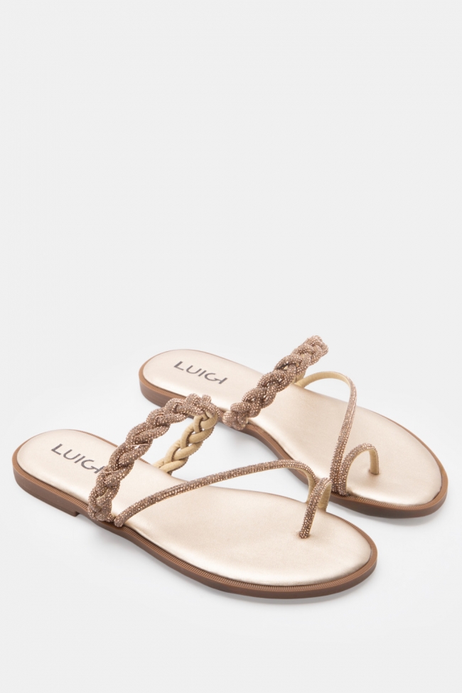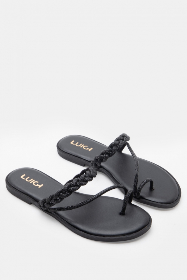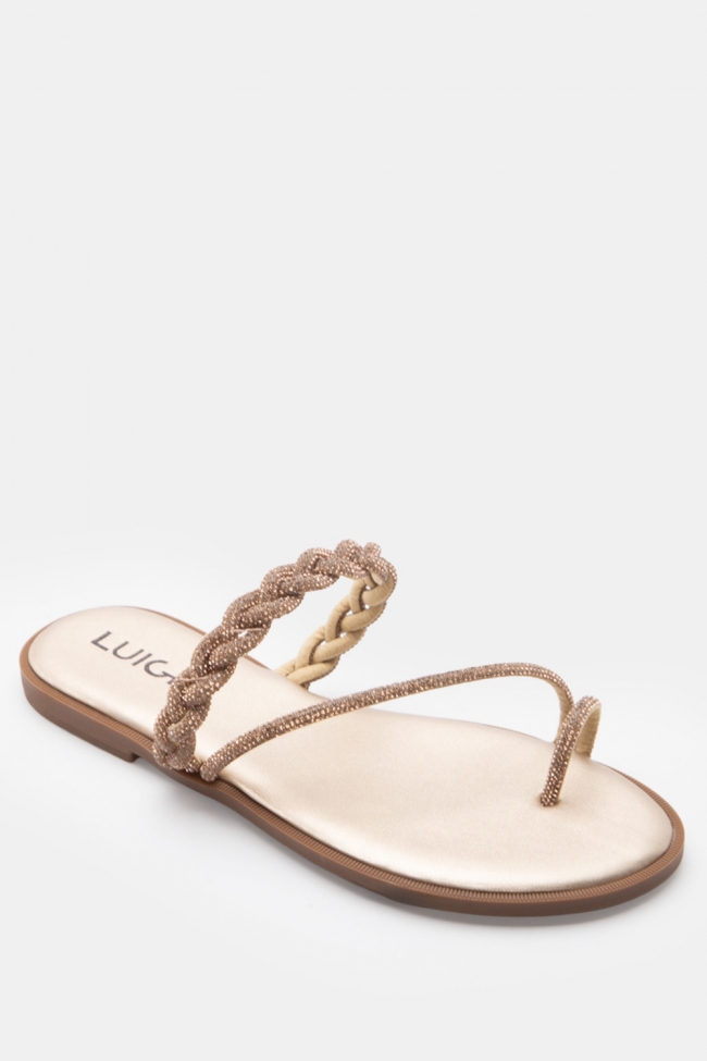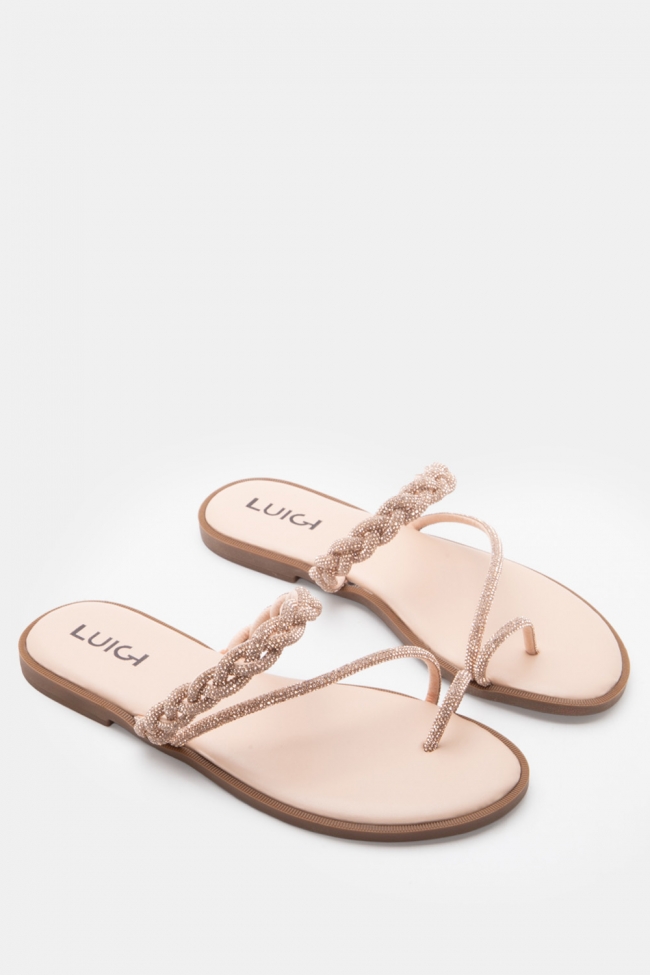 LUIGI DESIGN - Flat Σανδάλια με Λουράκι Πλεξούδα & Strass
