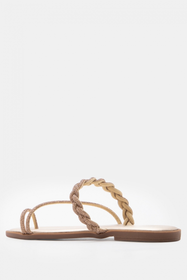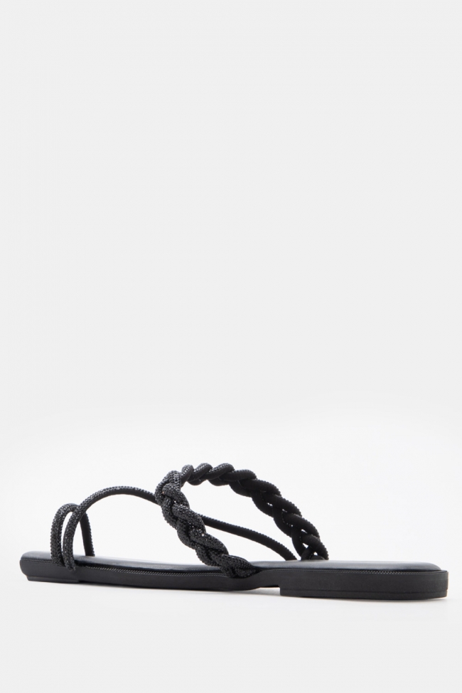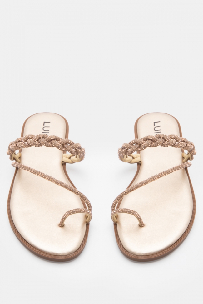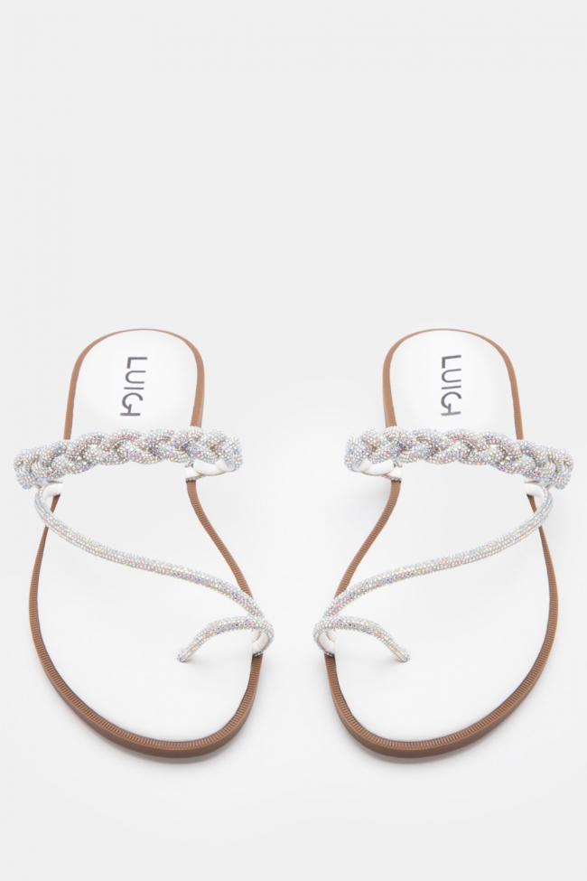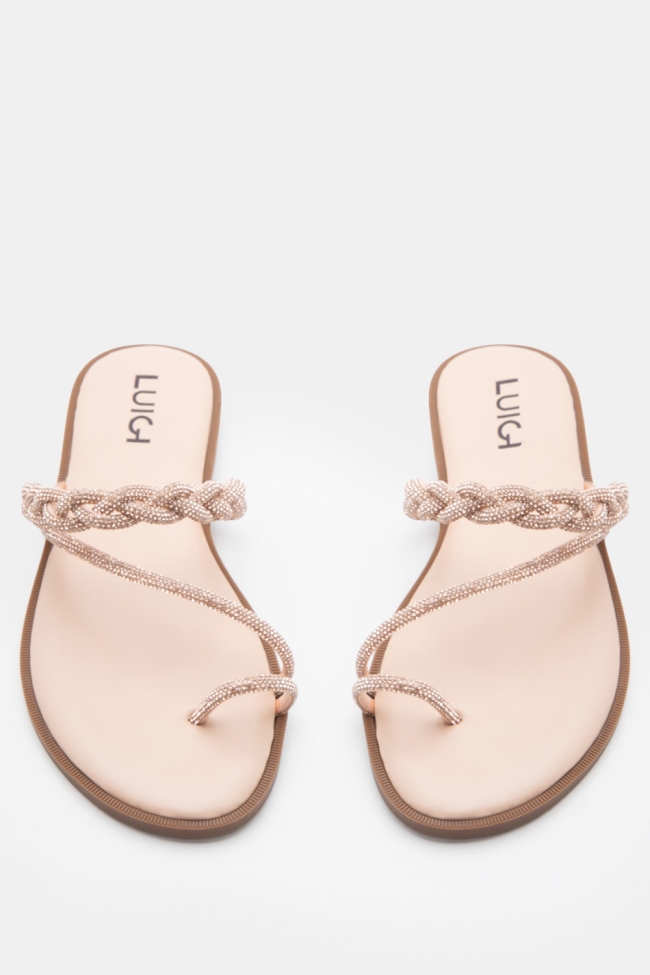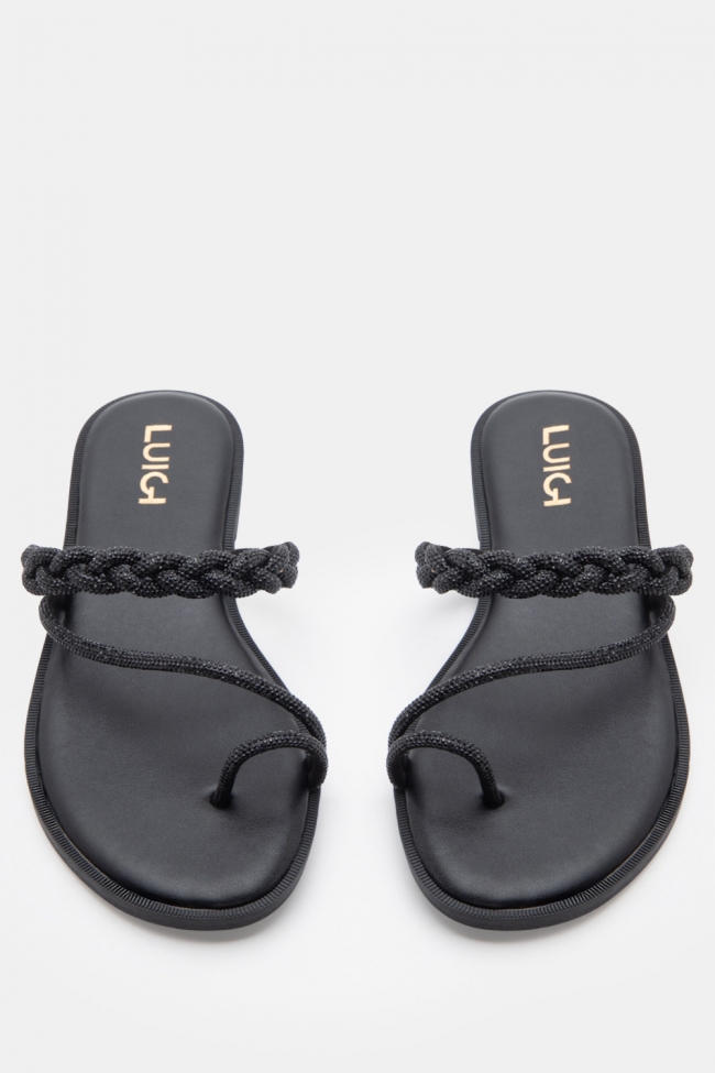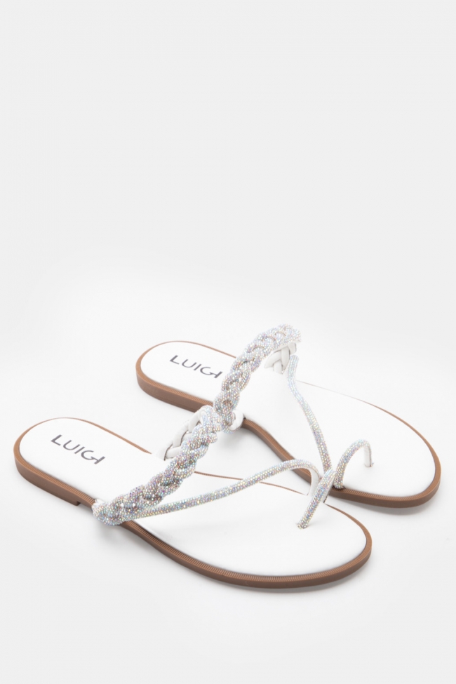 LUIGI DESIGN - Flat Σανδάλια με Λουράκι Πλεξούδα & Strass