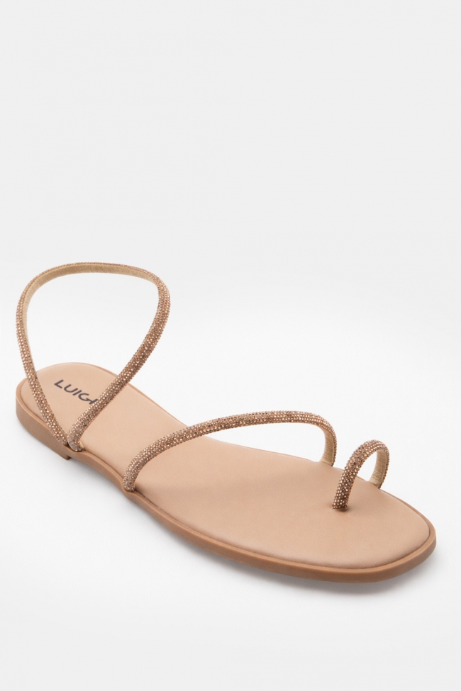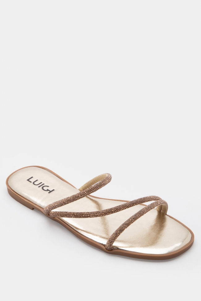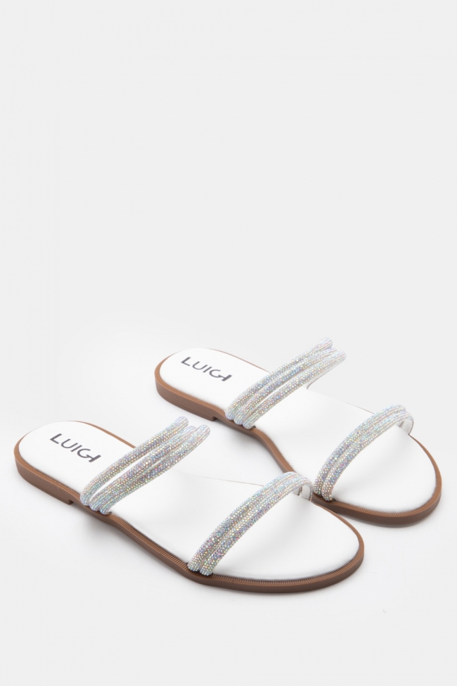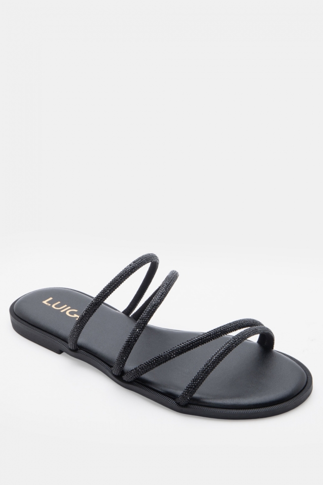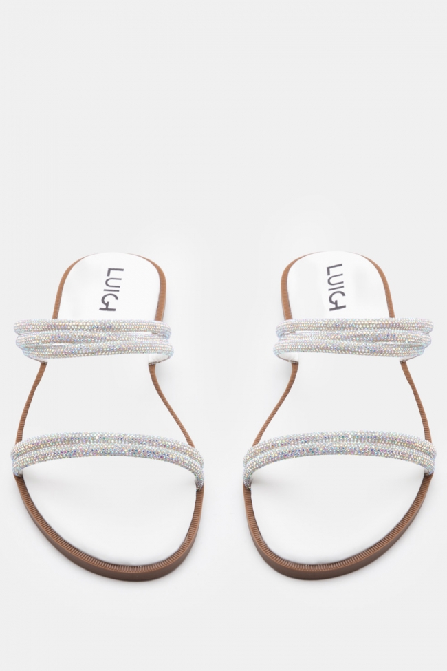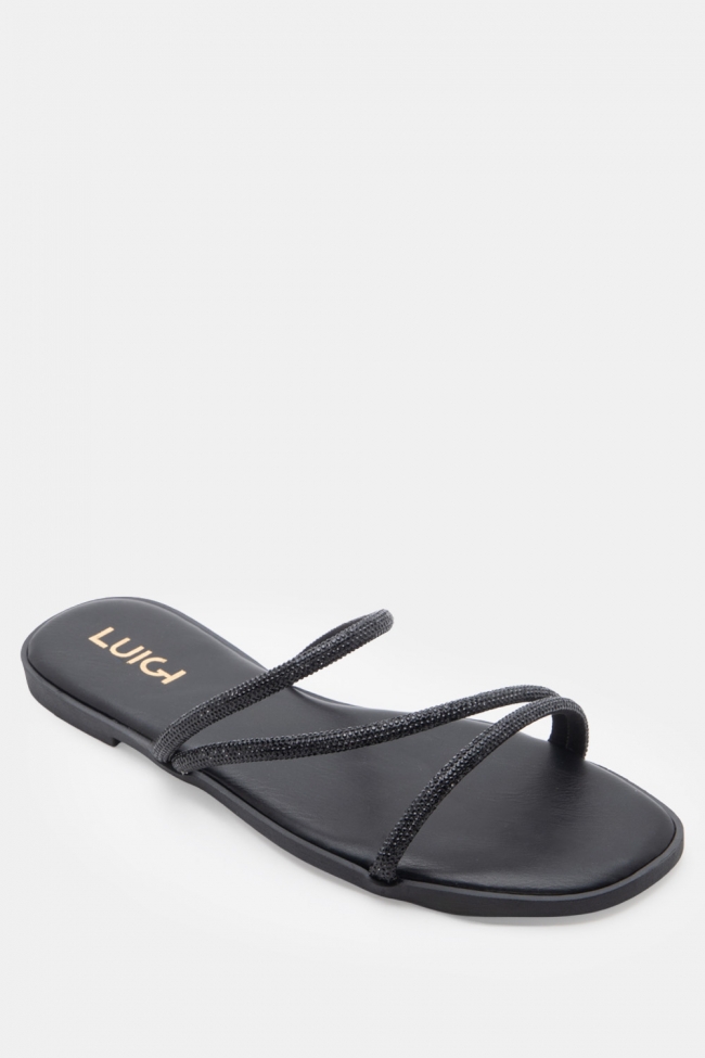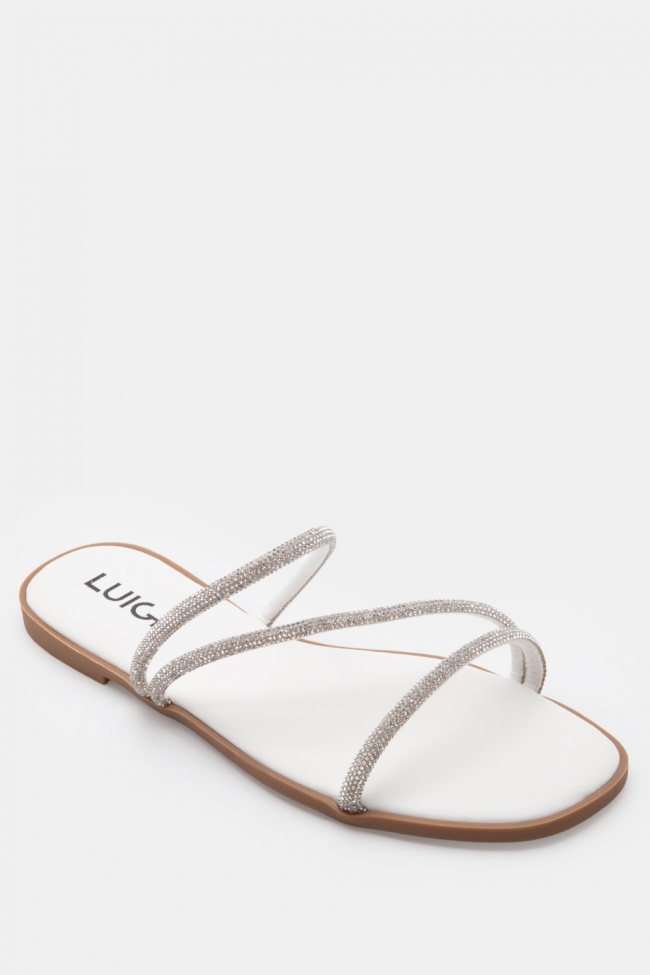 LUIGI DESIGN- Flat Σανδάλια με Λοξό Λουράκι & Strass