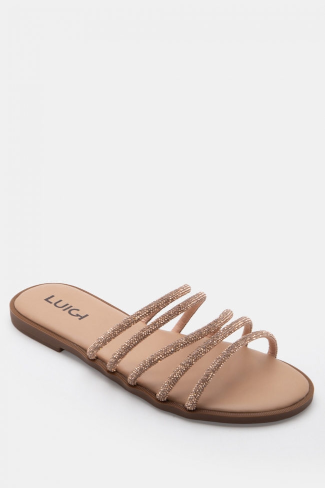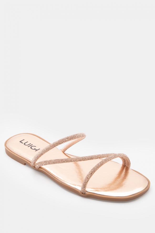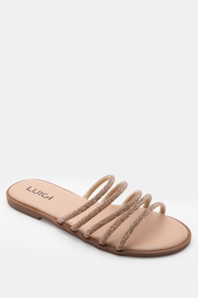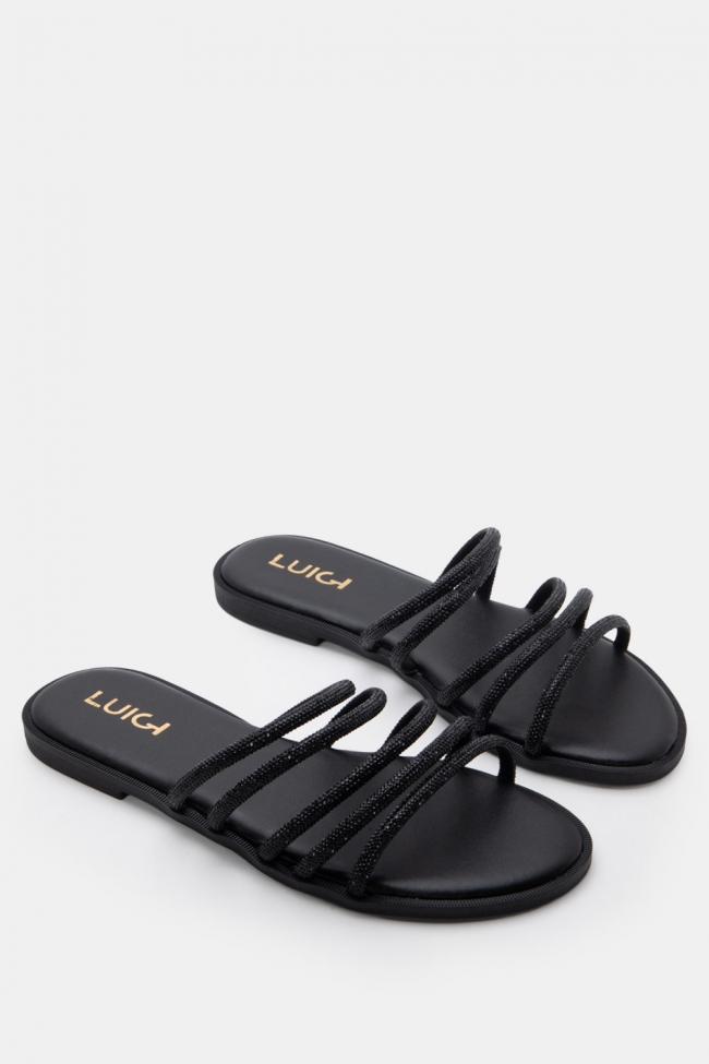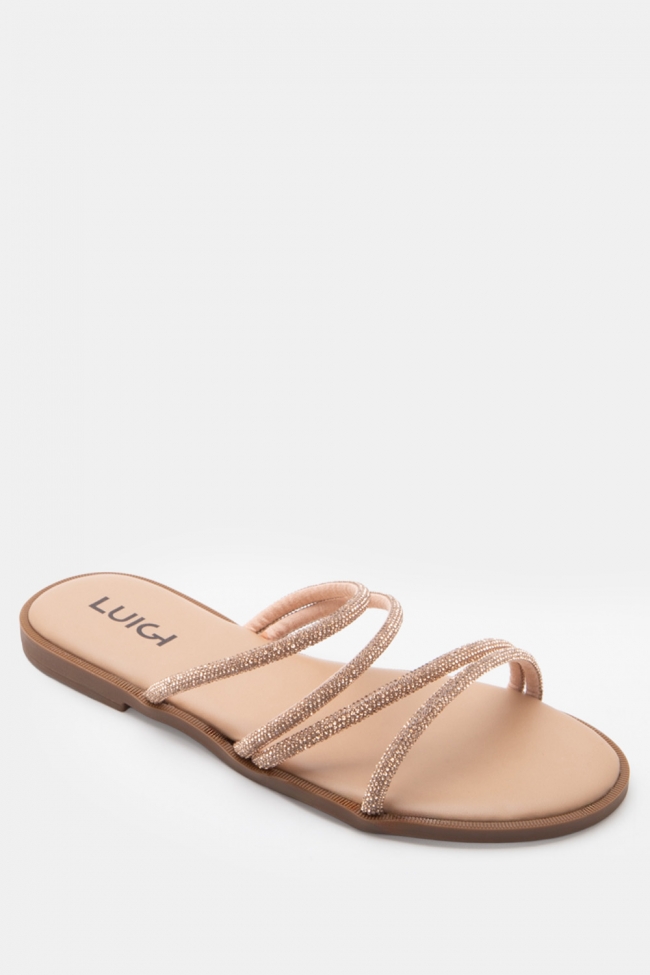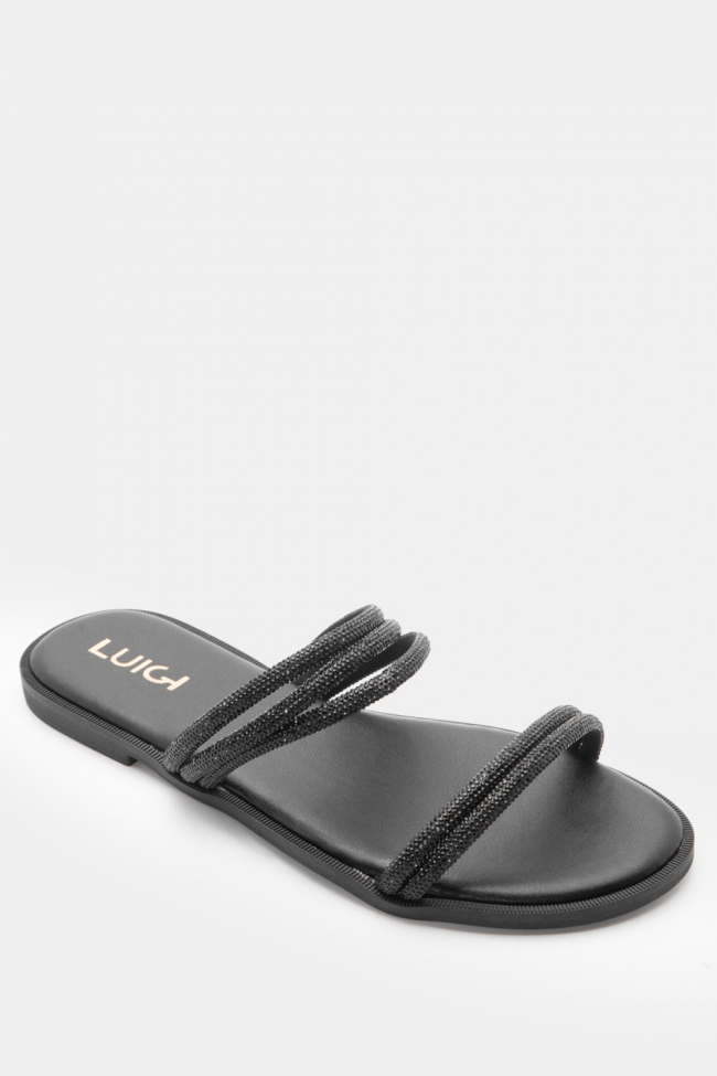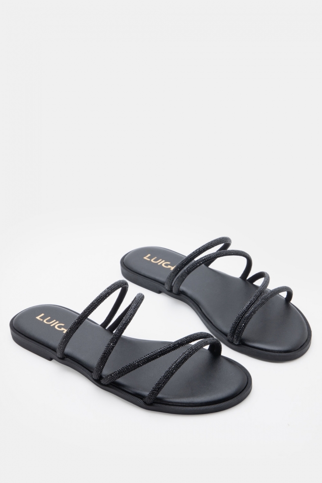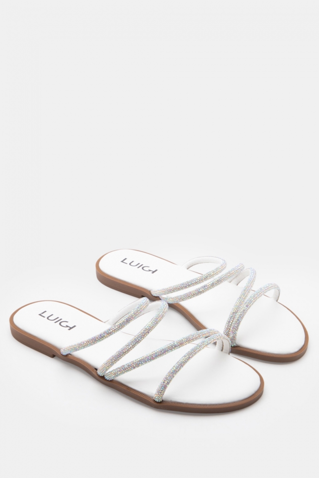 LUIGI DESIGN- Flat Σανδάλια με Λοξό Λουράκι & Strass