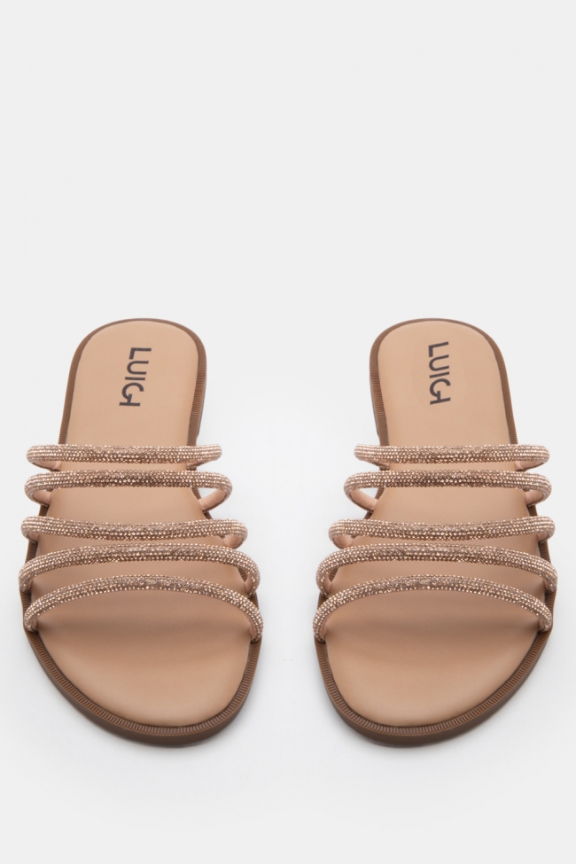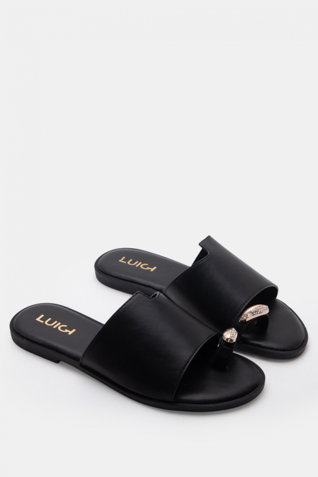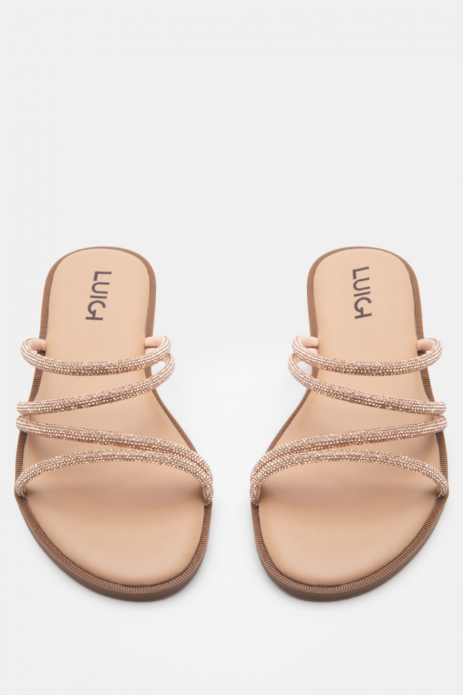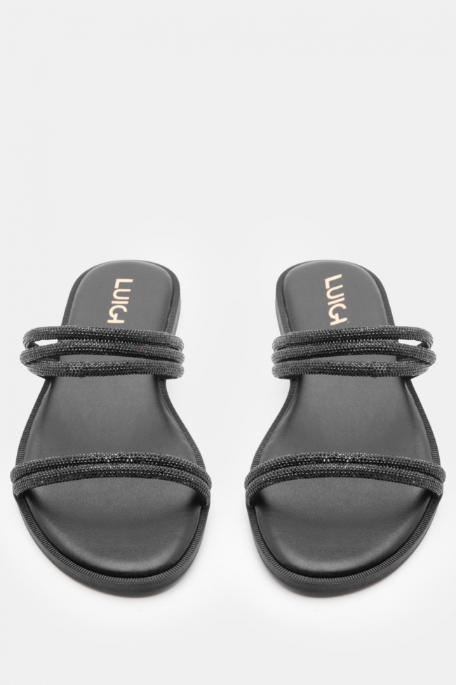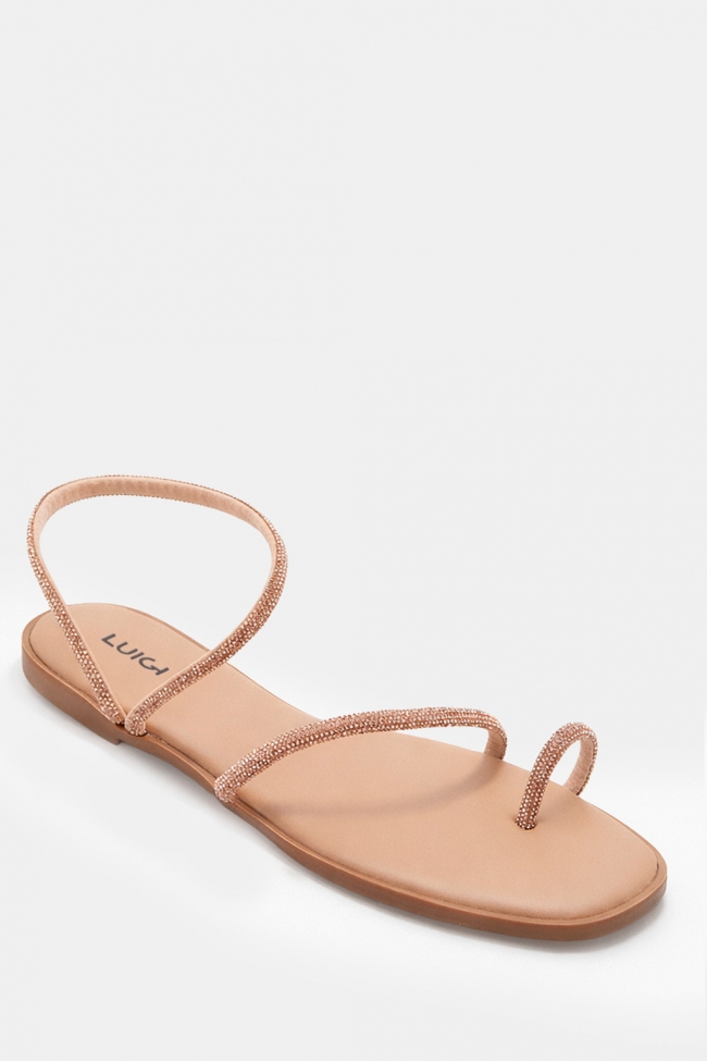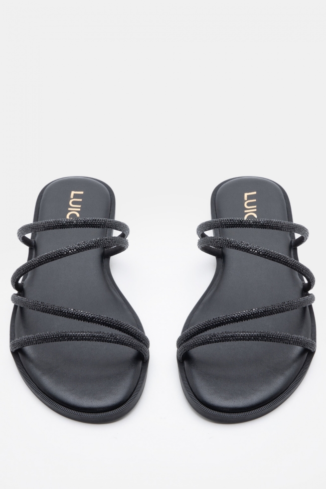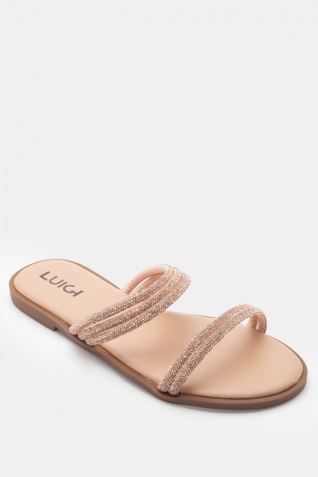 LUIGI DESIGN- Flat Σανδάλια με Λοξό Λουράκι & Strass