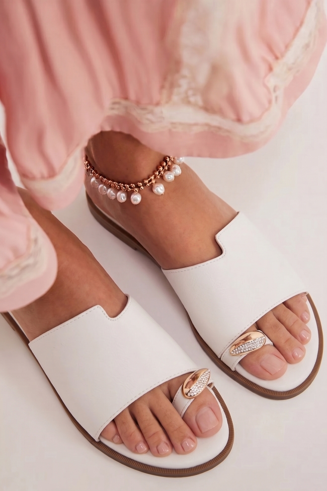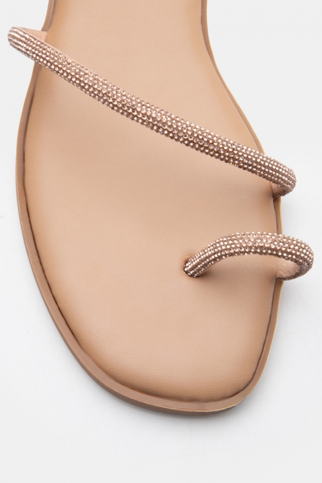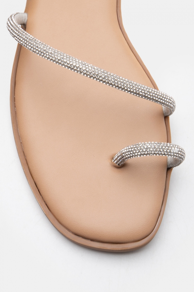 Flat Σανδάλια με Διακοσμητικό Λουράκι Από Strass