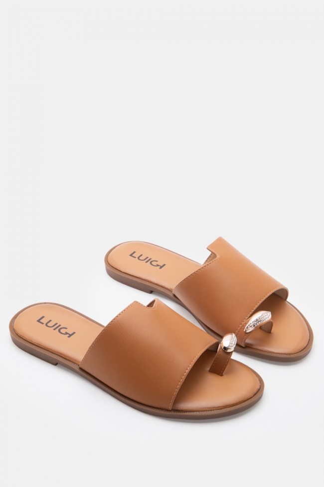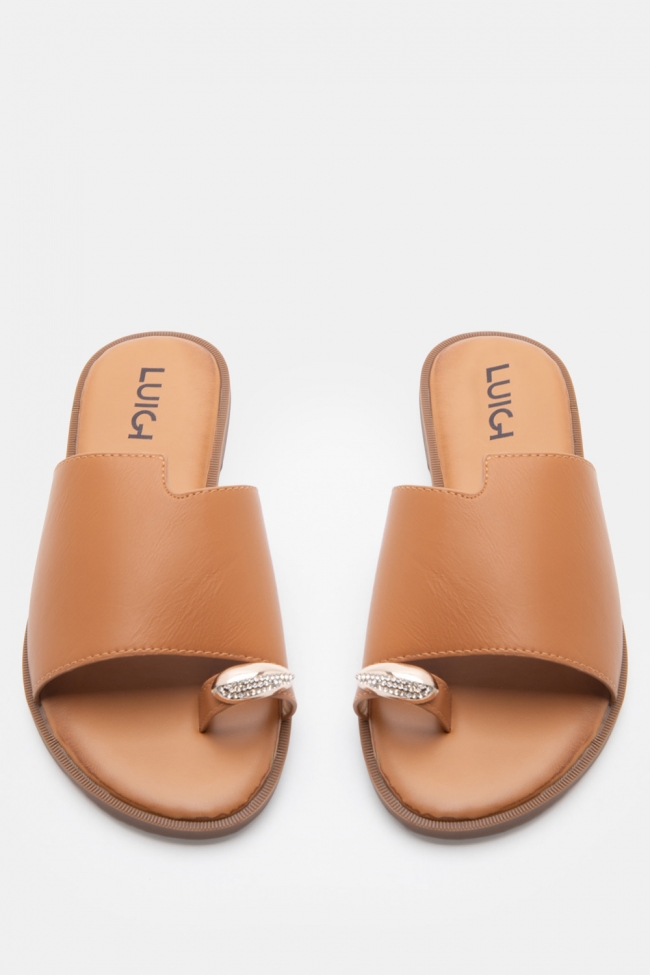 LUIGI DESIGN - Flat Σανδάλια με Μεταλλική Λεπτομέρεια & Strass