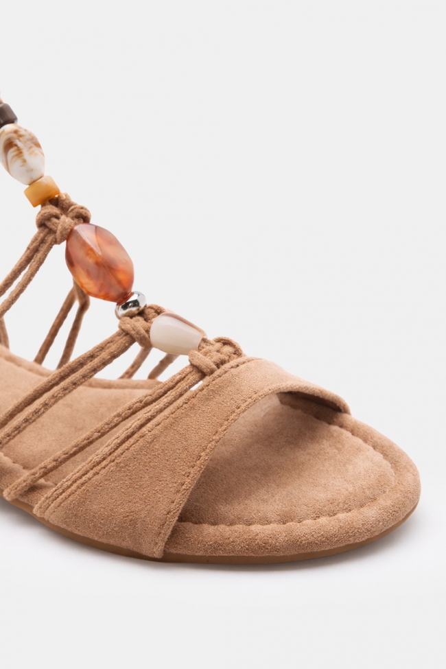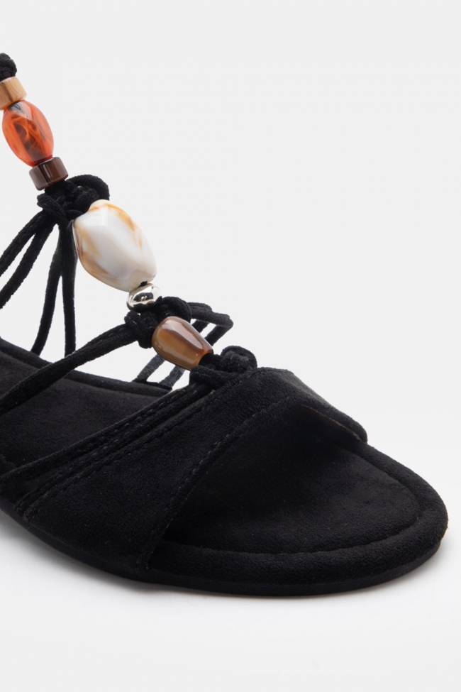 Flat Lace-Up Sandals with Beads