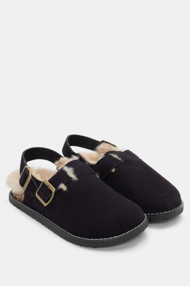 Clogs con Fodera Interna in Pelliccia & Fibbia