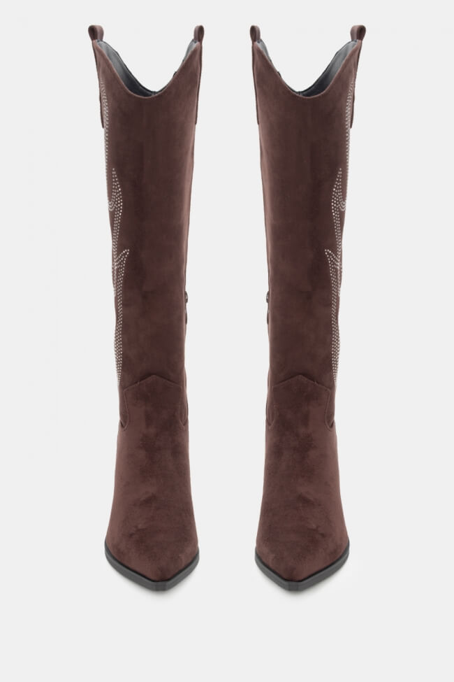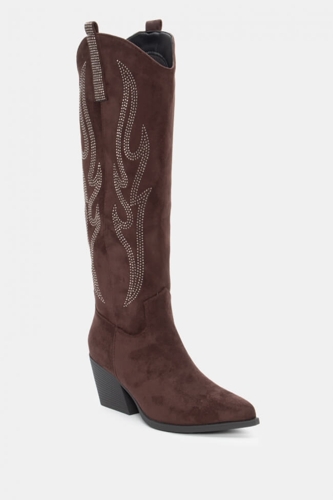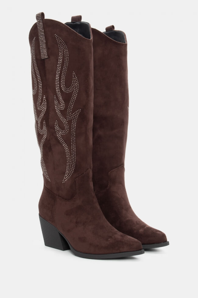 Stivaletti Cowboy con Fiamme Decorative in Strass