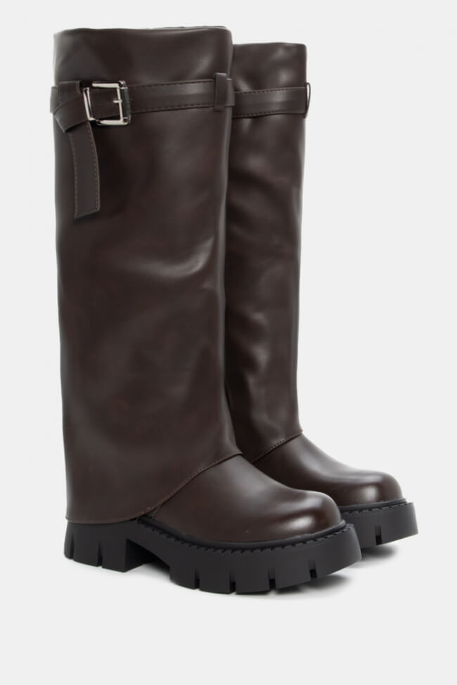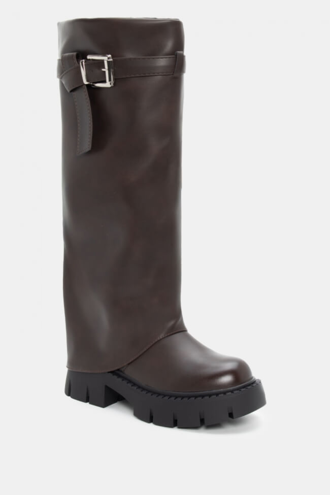 Stivali con Effetto Risvolto & Cinturino Decorativo