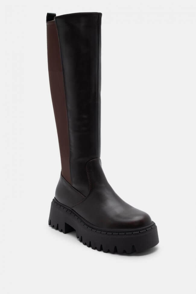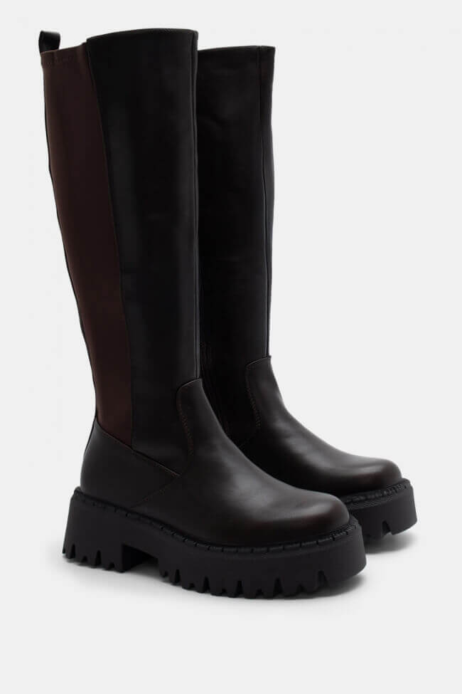 Stivali in Combinazione di Materiali & Suola Carrarmato