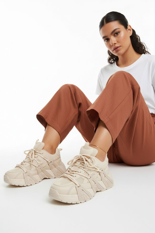 Sneakers cu Talpă Dublă cu Perle Decorative