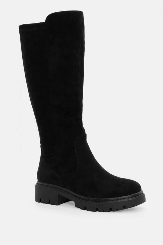 The flat boots can be paired with jeans or even skirts for a more chic & comfy look.