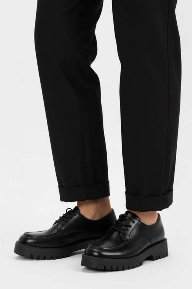 Scegli loafers alti con dettagli metallici o in texture particolari, come velluto o vernice, e indossali con abito lungo aderente o minigonna per un effetto glam.